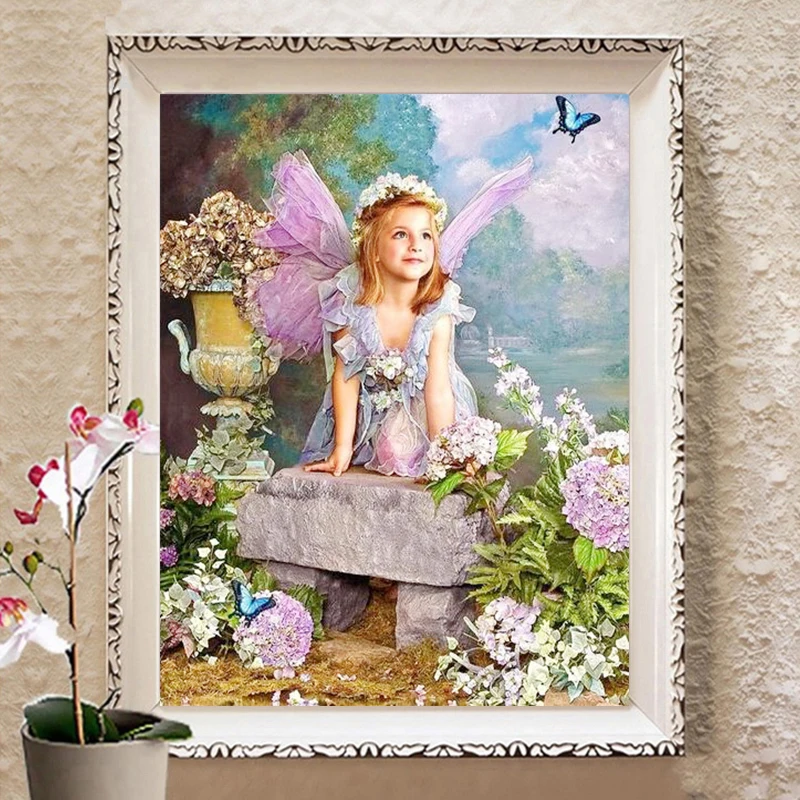 Алмазная 5D картина Ангел, цветочный малыш, полная выкладка, мозаик...