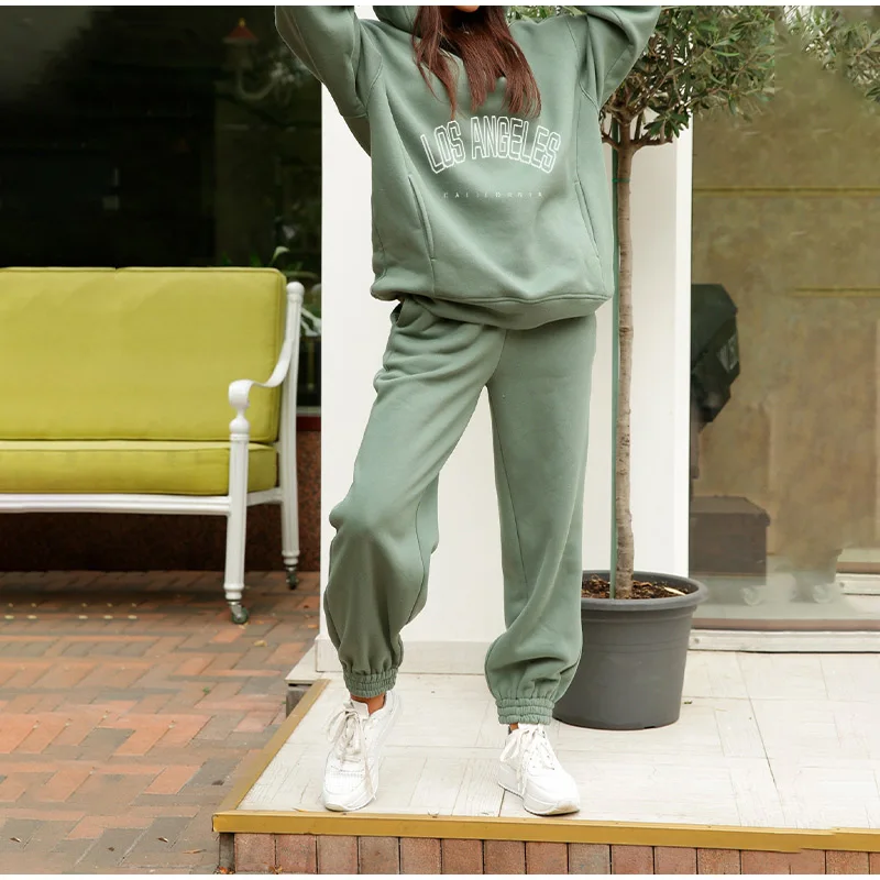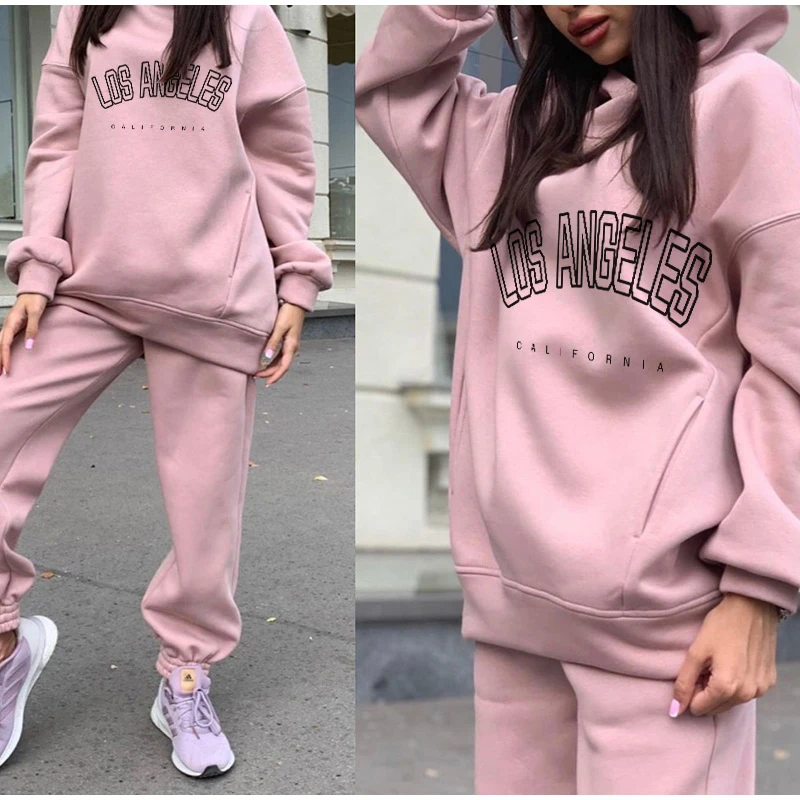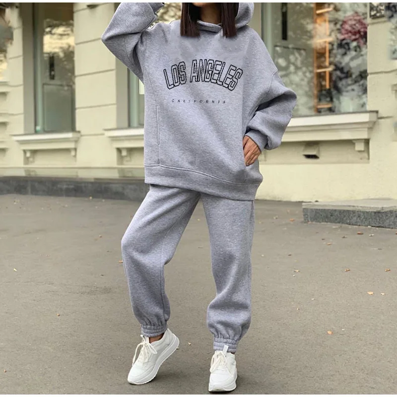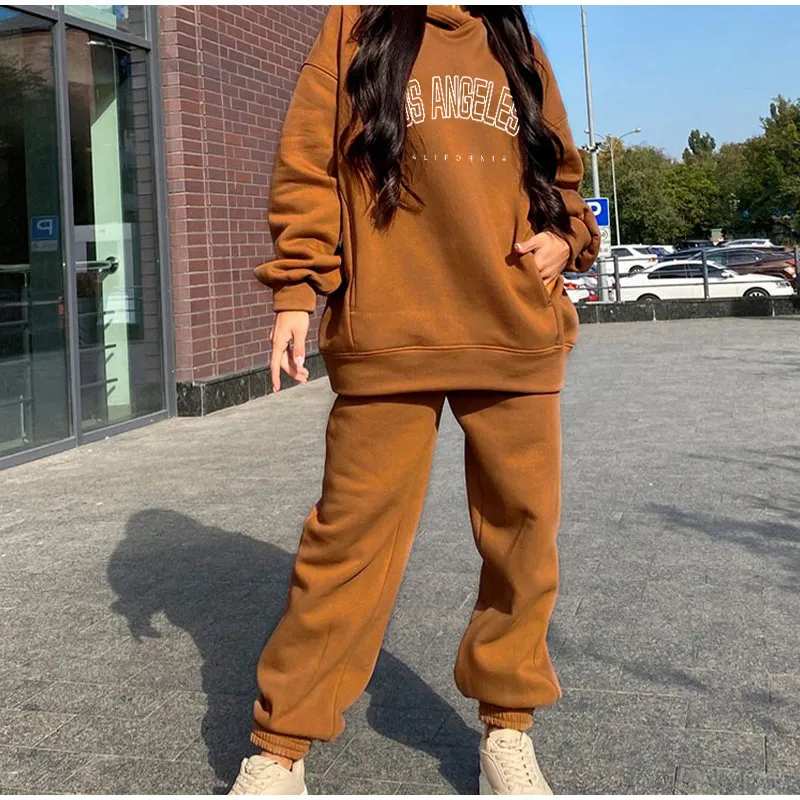 Женский комплект из двух предметов, повседневный флисовый спортивный костюм, зимний 2021, женский комплект, толстовка с капюшоном и длинным рукавом большого размера, спортивные брюки, женский костюм