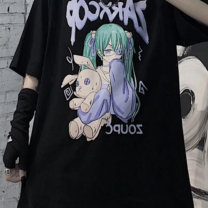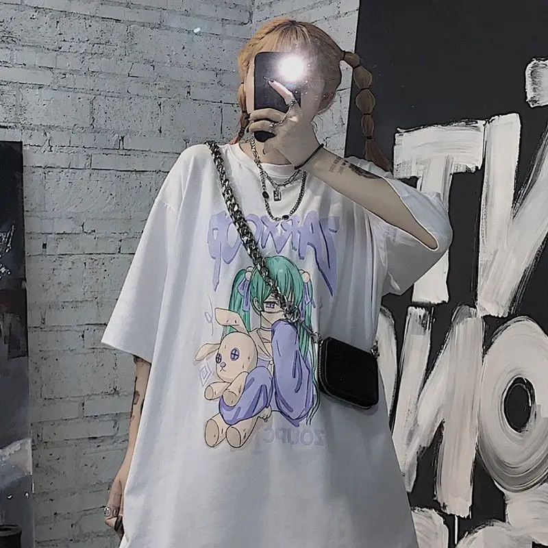 Y2K женские футболки гот, Харадзюку аниме кавайный принт девчачья графика 2021 зима размера плюс одежда Топы