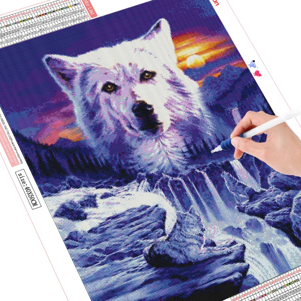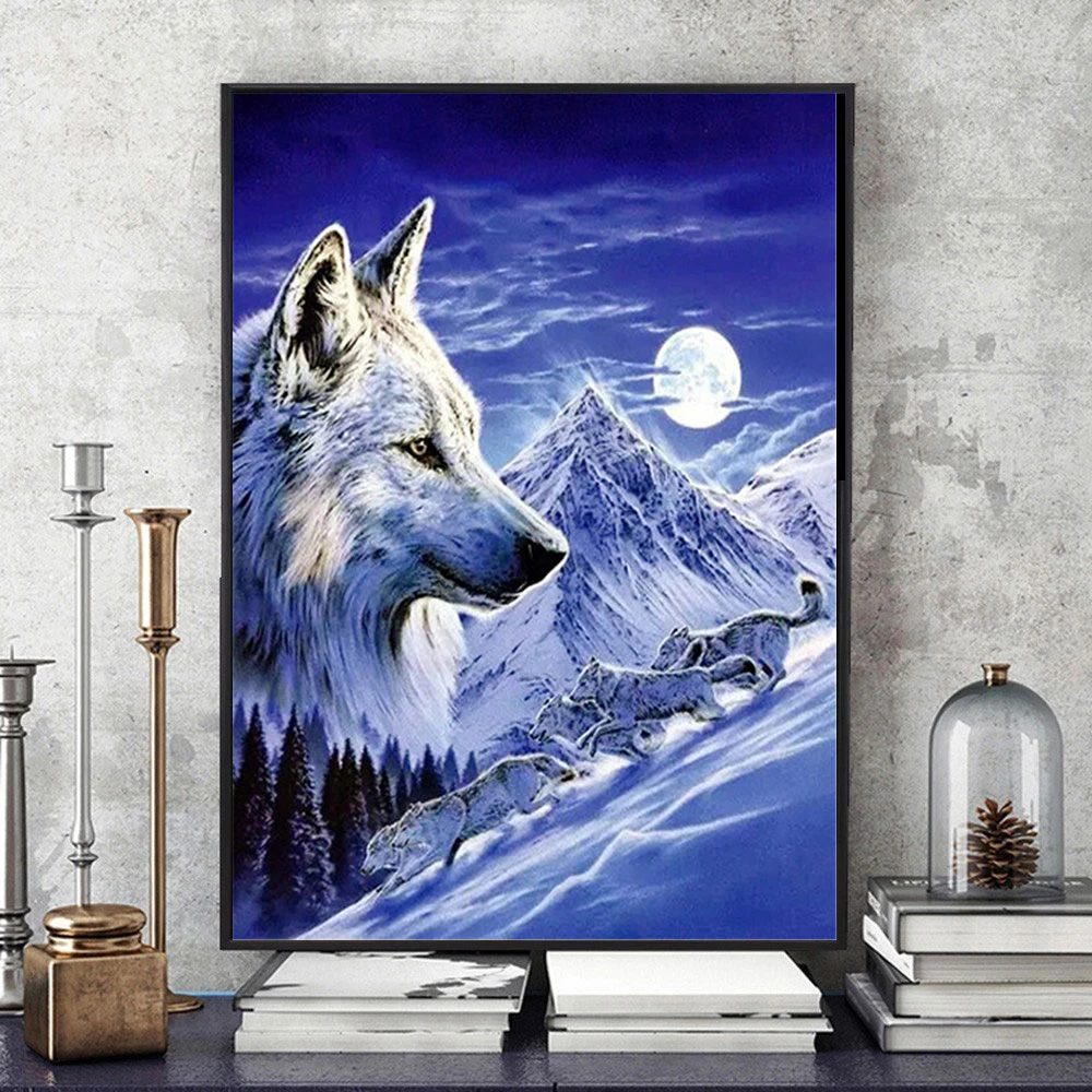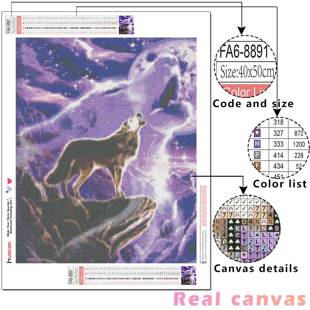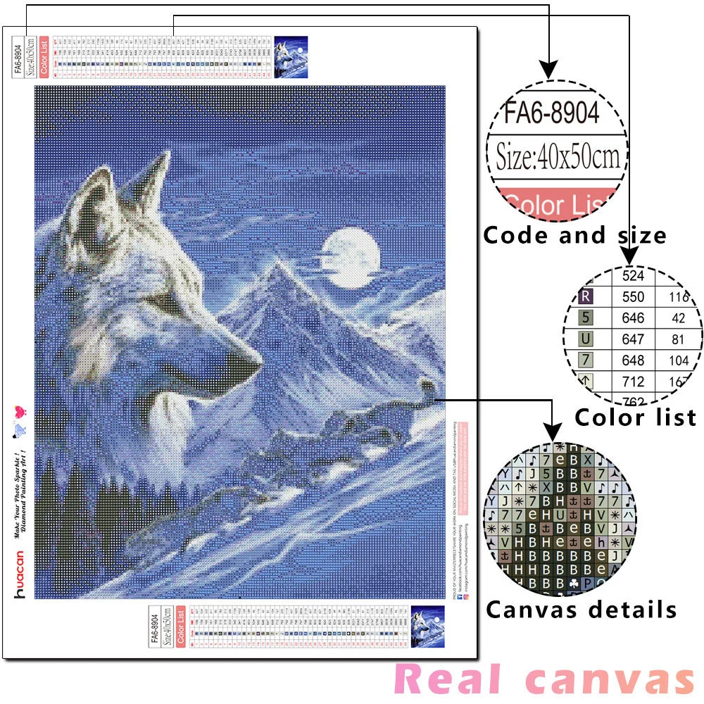 Алмазная живопись 5d HUACAN сделай сам, мозаика с волком, луна, полная выкладка, круглая вышивка, животное, ручная работа, настенное искусство