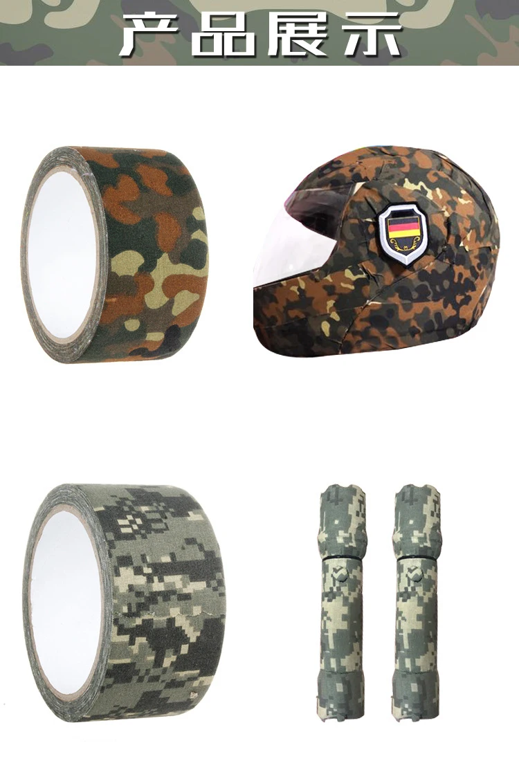 Особенности: идеально подходит для оружия, прицелов, биноклей, фонариков, ножей и ножек, патронов, столовых, больше используется для основного покрытия предметов, включая комплекты оружия, записные книжки, используемые для камуфляжного оборудования, включая оружие, факелы, Фляги, используемые для мелкого ремонта на оборудовании, используемом в качестве средства для маскировки лента не только пригодна для военных, но и отлично подходит для тех, кто работает на открытом воздухе.