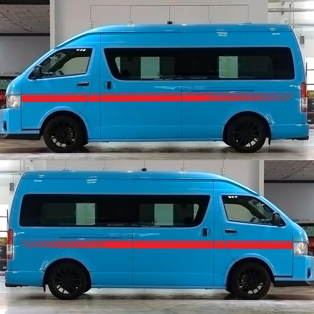 2 шт., декоративные наклейки для дверей гоночного автомобиля, линии талии, боковые полосы, для Toyota Hiace, авто Декор, виниловая пленка, наклейки, аксессуары