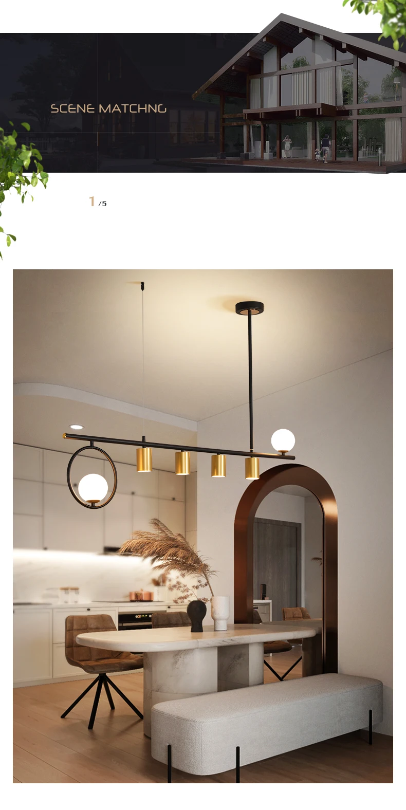 Подвесной светодиодный светильник в скандинавском стиле, лампа черного и золотого цвета с 6 головками для гостиной, столовой, кухни, украшение для дома