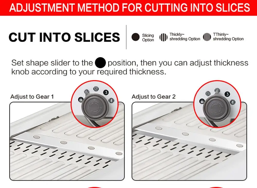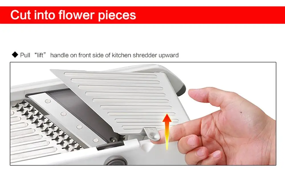 -Изготовлен из безопасного пищевого материала, экологически чистый, нетоксичный и безвкусный-Пищевая толкатель может повысить эффективность работы и предотвратить повреждения при резке-Многофункциональная ломтерезка мандолина может быть отрегулирована в 18 видах различных размеров ломтиков и кусочков-Идеально подходит для огурцов, моркови, имбиря, чеснока, лука, картофеля, лимонов и т. д.