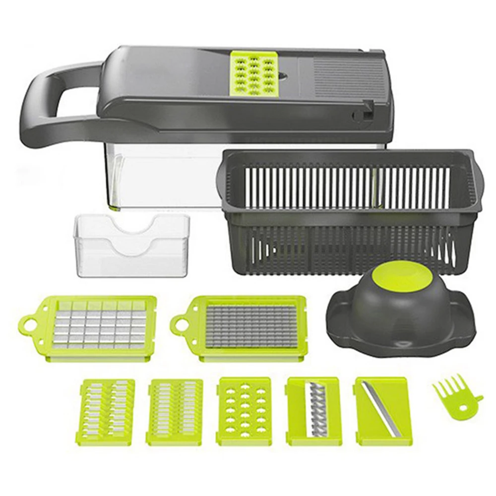 Профессиональная овощерезка с регулируемыми лезвиями из нержавеющей стали, ручная мандолина, резак для лука, кухонная дробилка для чеснока, инструмент