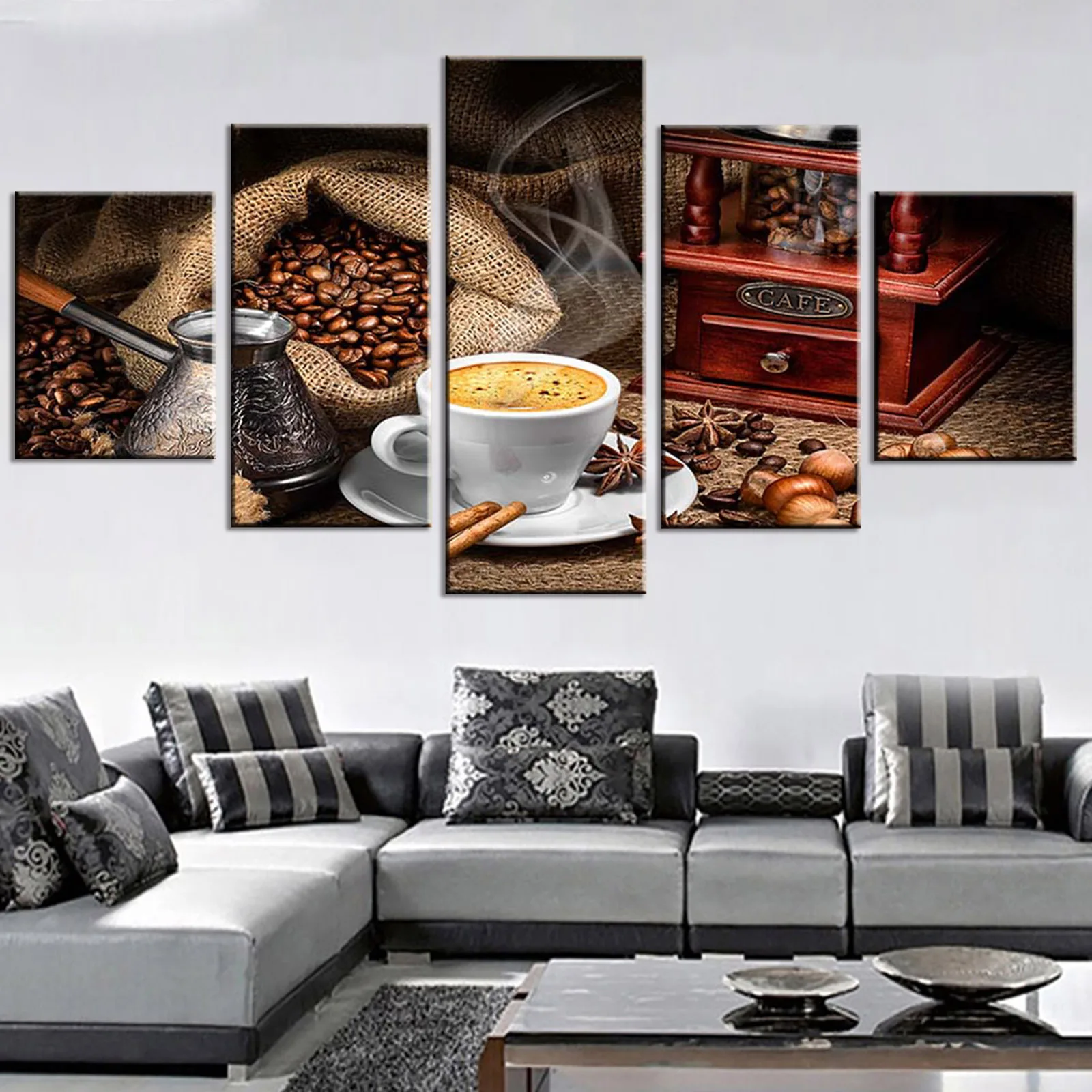 Кофе художественной росписи картины на холсте картинки для Гостиная рамки 5 шт. модульная HD печатает кухонный плакат домашний деко