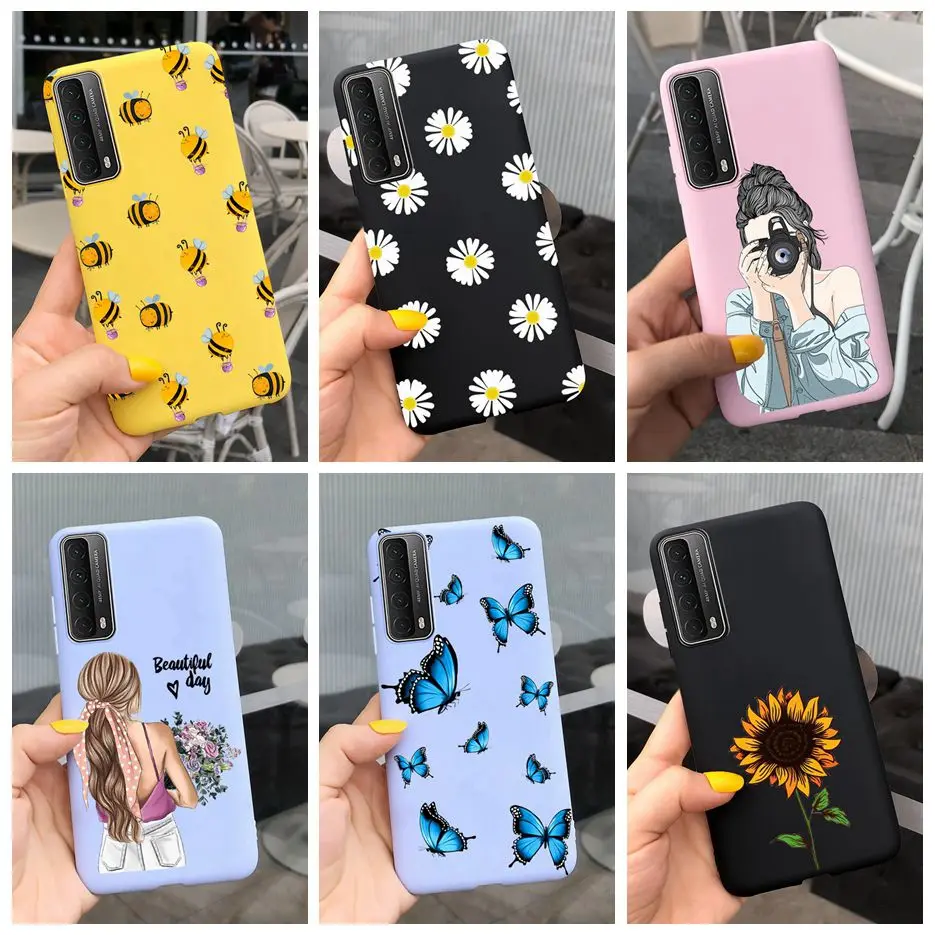 Матовый Силиконовый чехол с цветами для Huawei P Smart 2021 2020 20...