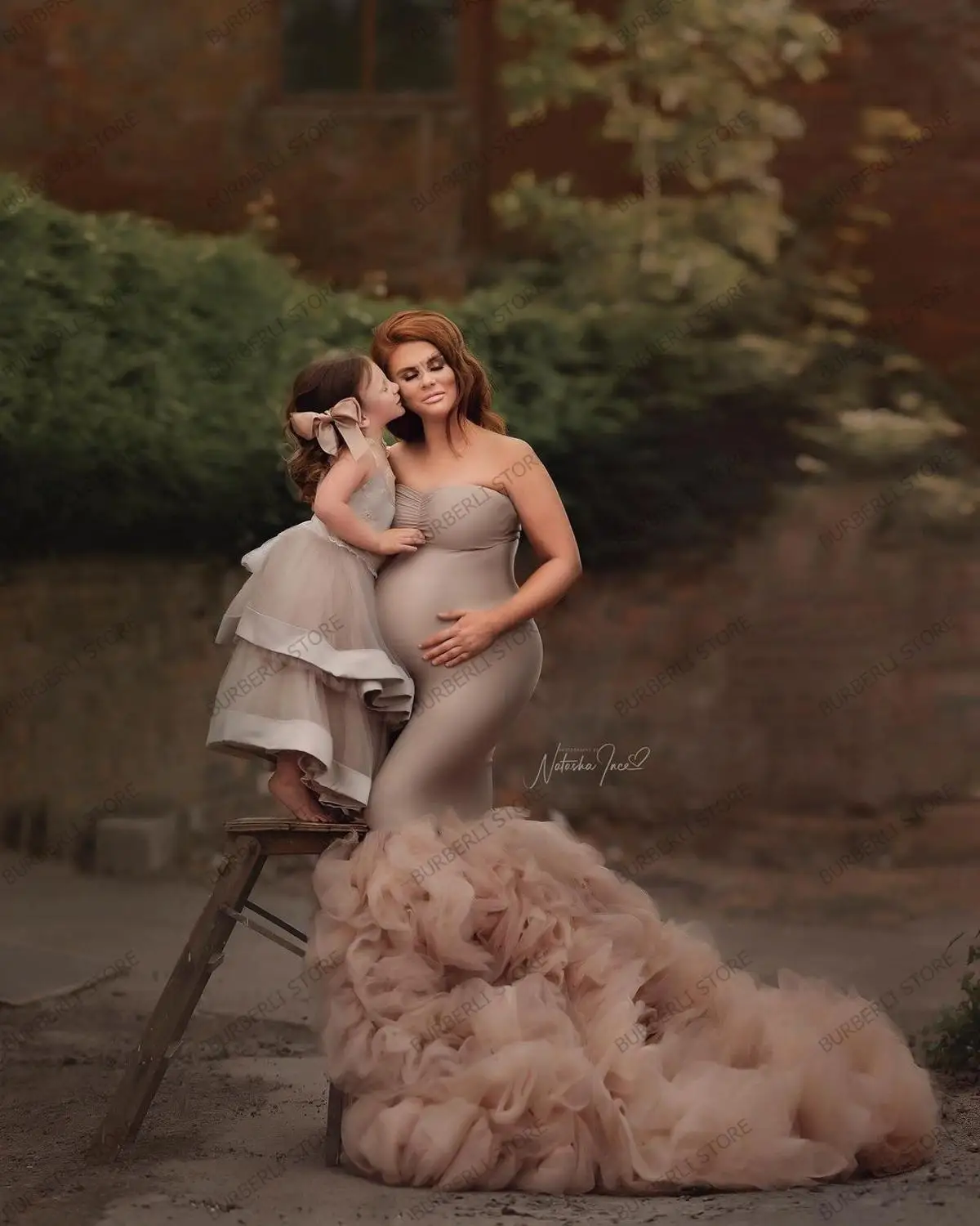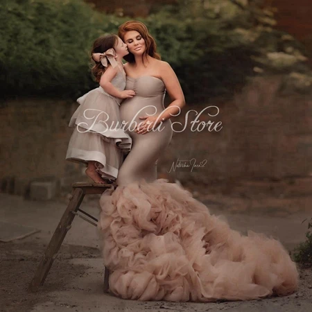 Элегантные платья для беременных без бретелек с оборками тюлевые длинные женские платья-русалки халаты для фотосъемки длинные платья в пол для душа