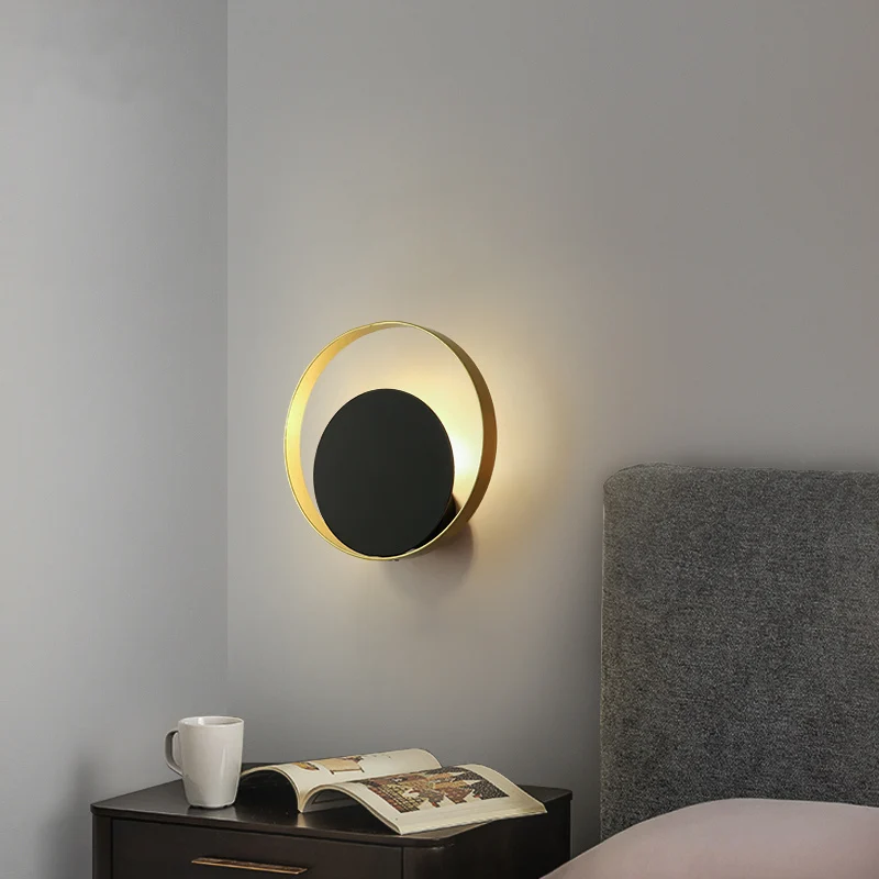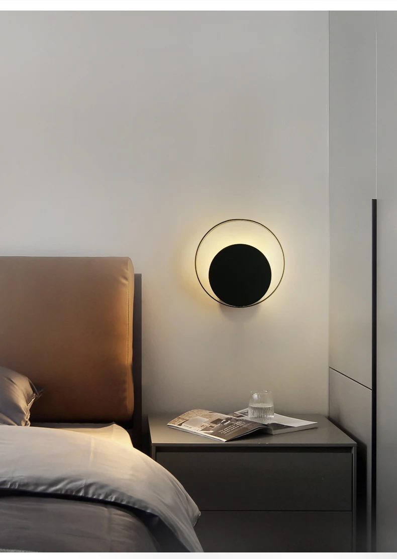 Современная светодиодная настенная лампа, черное вращающееся бра для спальни, лестницы, коридора, коридора, фойе, декоративное круглое освещение для интерьера