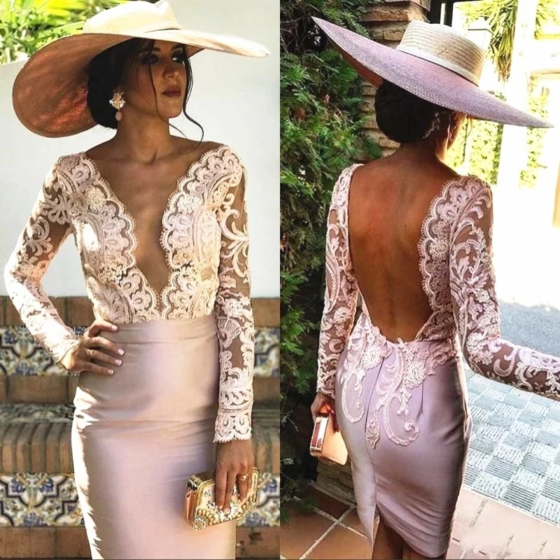 Короткие платья для матери невесты с V-образным вырезом длиной до колена кружевное женское платье с длинным рукавом свадебные платья для коктейльной вечеринки