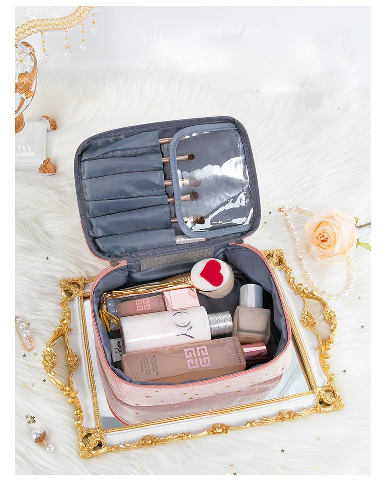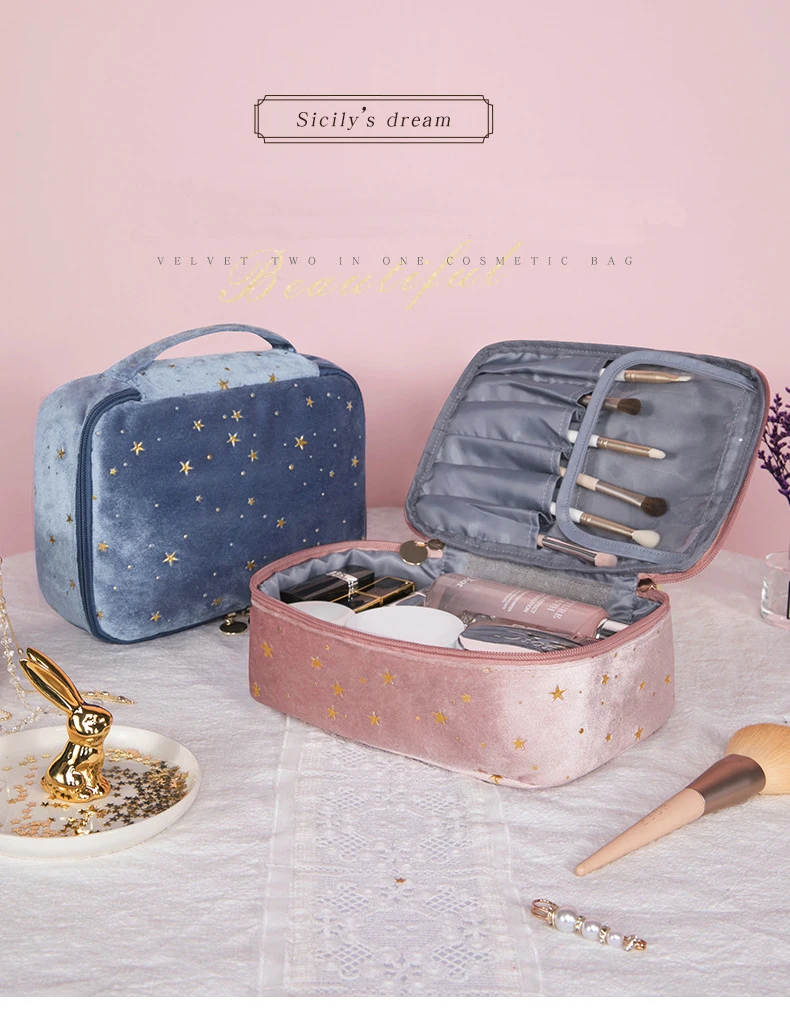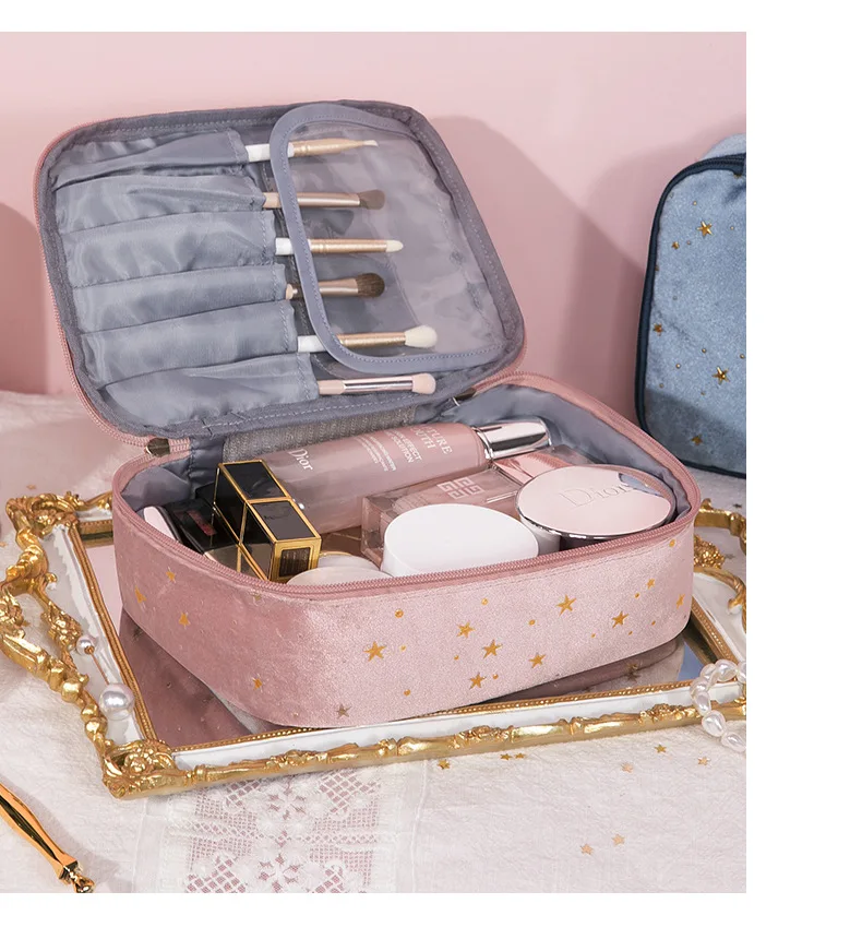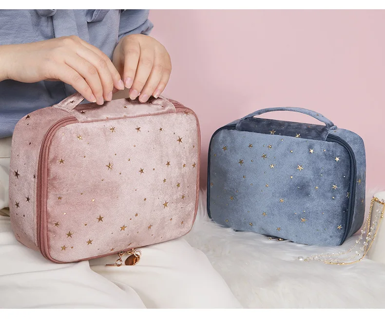 Бархат косметичка мягкая Портативный путешествия губная помада для хранения из пайеток звёздные фланель двойной слой косметики Рождественский подарок на Новый год