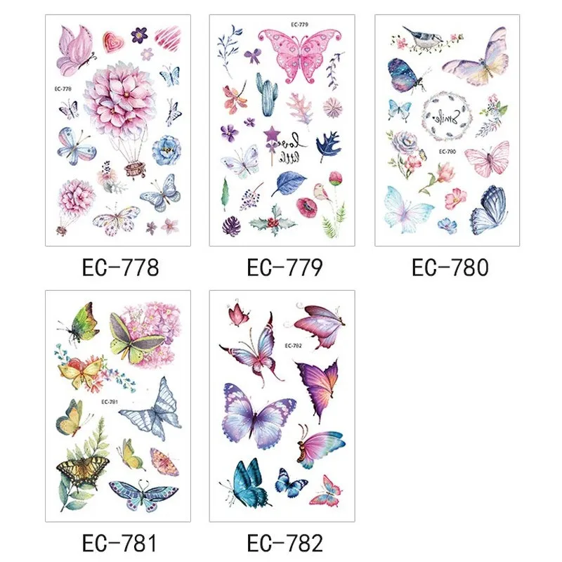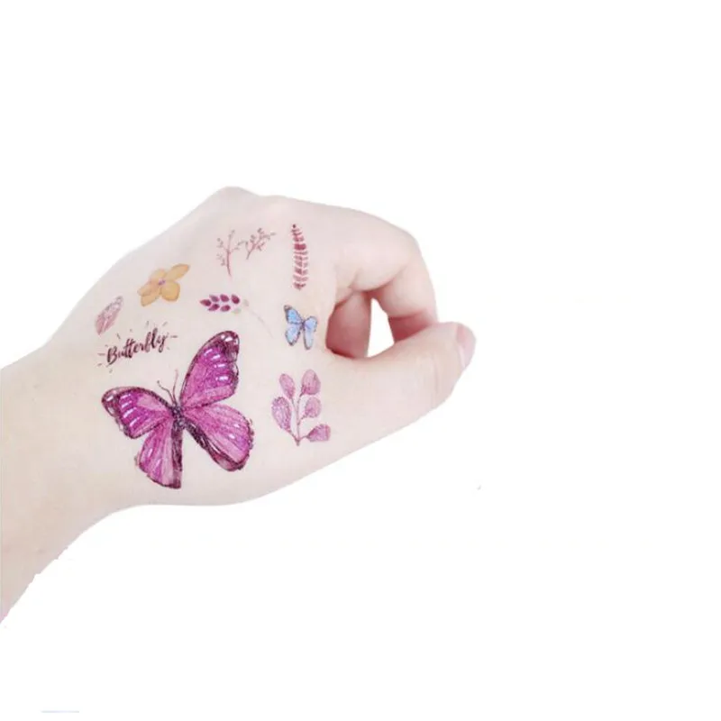 Татуировка бабочка, наклейка для детей, подарок на день рождения, милая поддельная наклейка для детей, боди-арт, водостойкие Временные татуировки, мультфильм