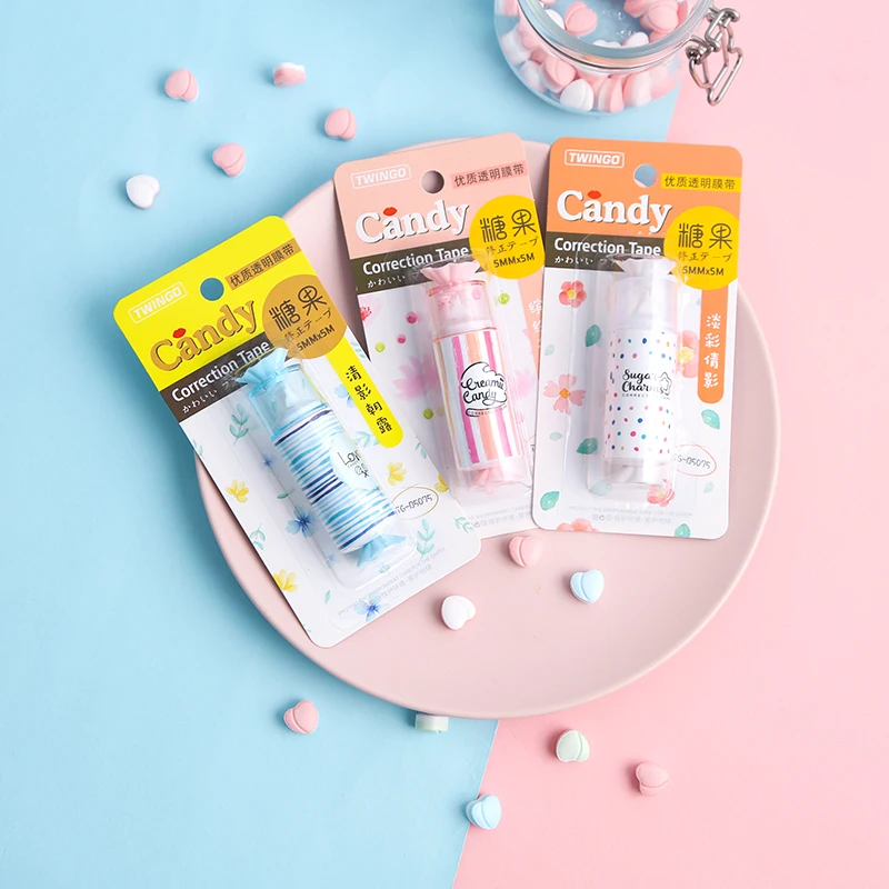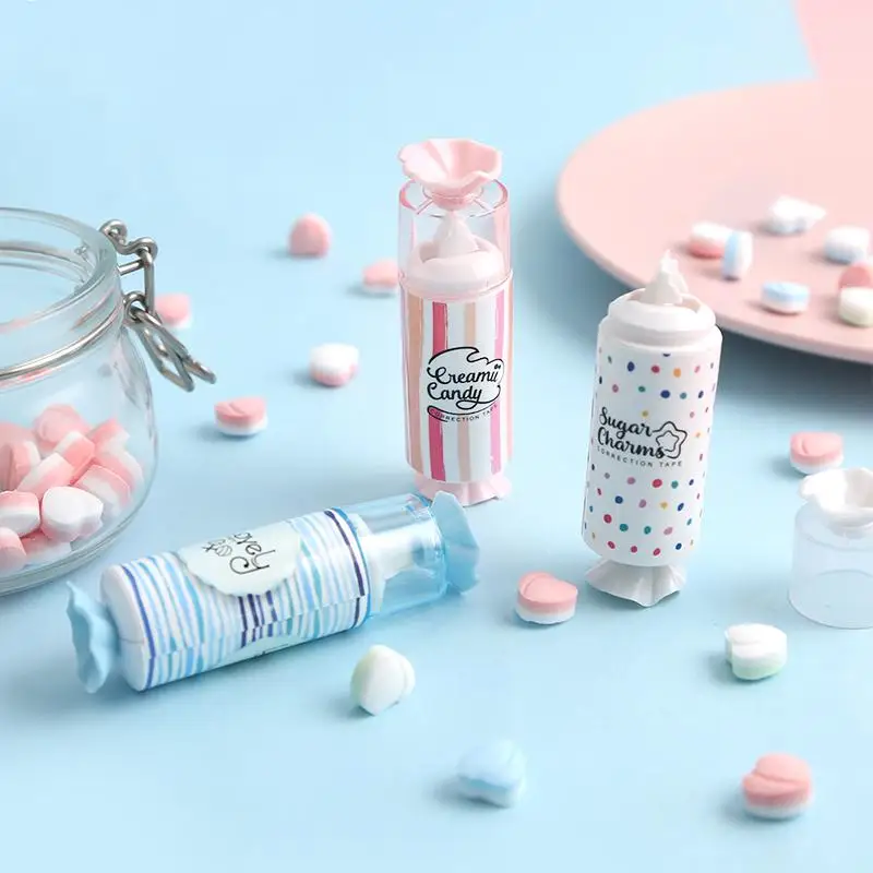 Комплект из 3 предметов, милый конфеты белый Корректирующая лента школьные принадлежности корейские кавайные канцелярские принадлежности аксессуары