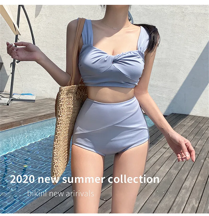 Женский купальник из двух предметов, женский купальник бикини купальник с высокой талией в Корейском стиле, пляжная одежда для плавания, модель 2021 года