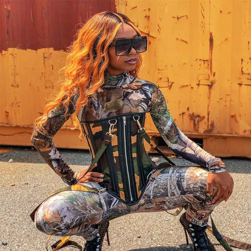 Женский комбинезон с длинным рукавом, боди и брюки с эстетическим п...