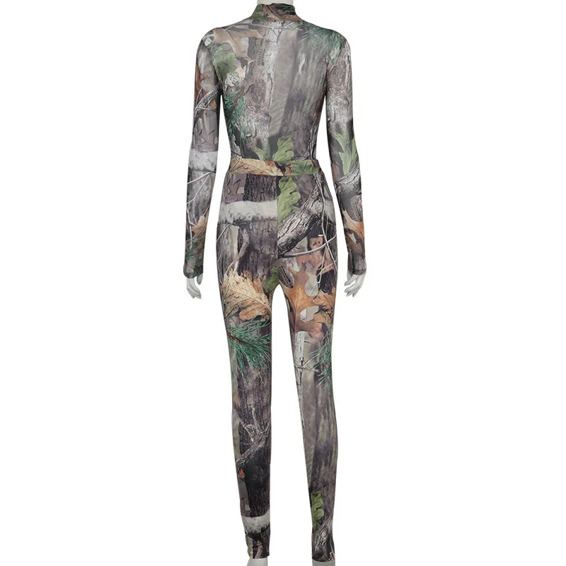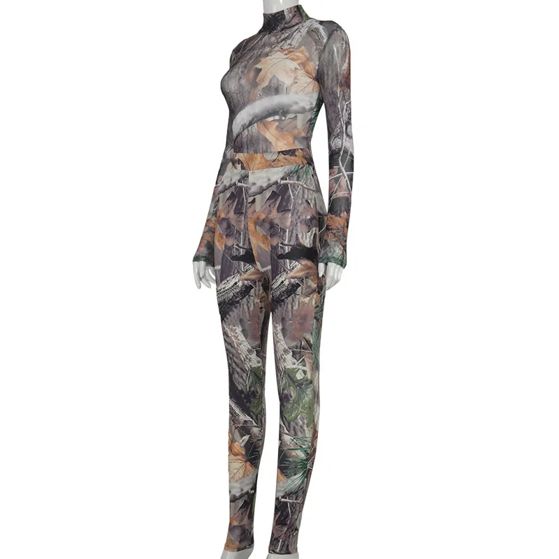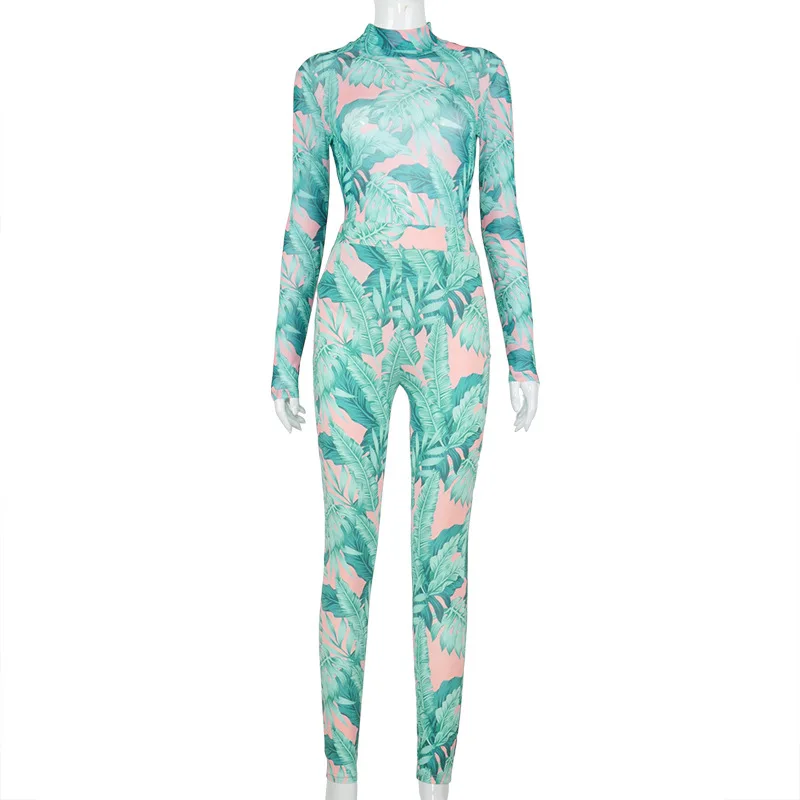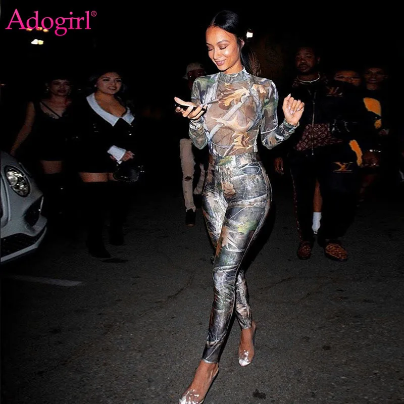 Adogirl облегающий комплект из двух предметов с принтом листьев, боди с ложным воротником и длинным рукавом, топ, брюки-карандаш, сексуальная уличная одежда, осенняя одежда