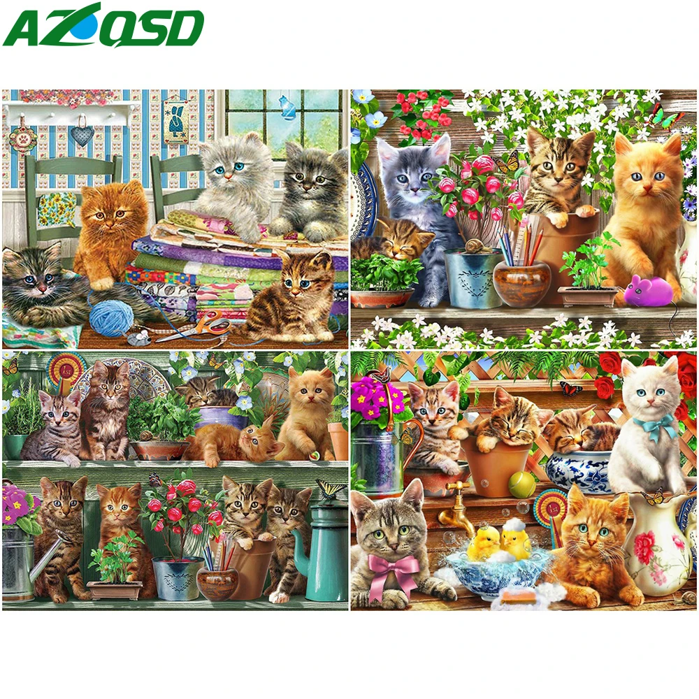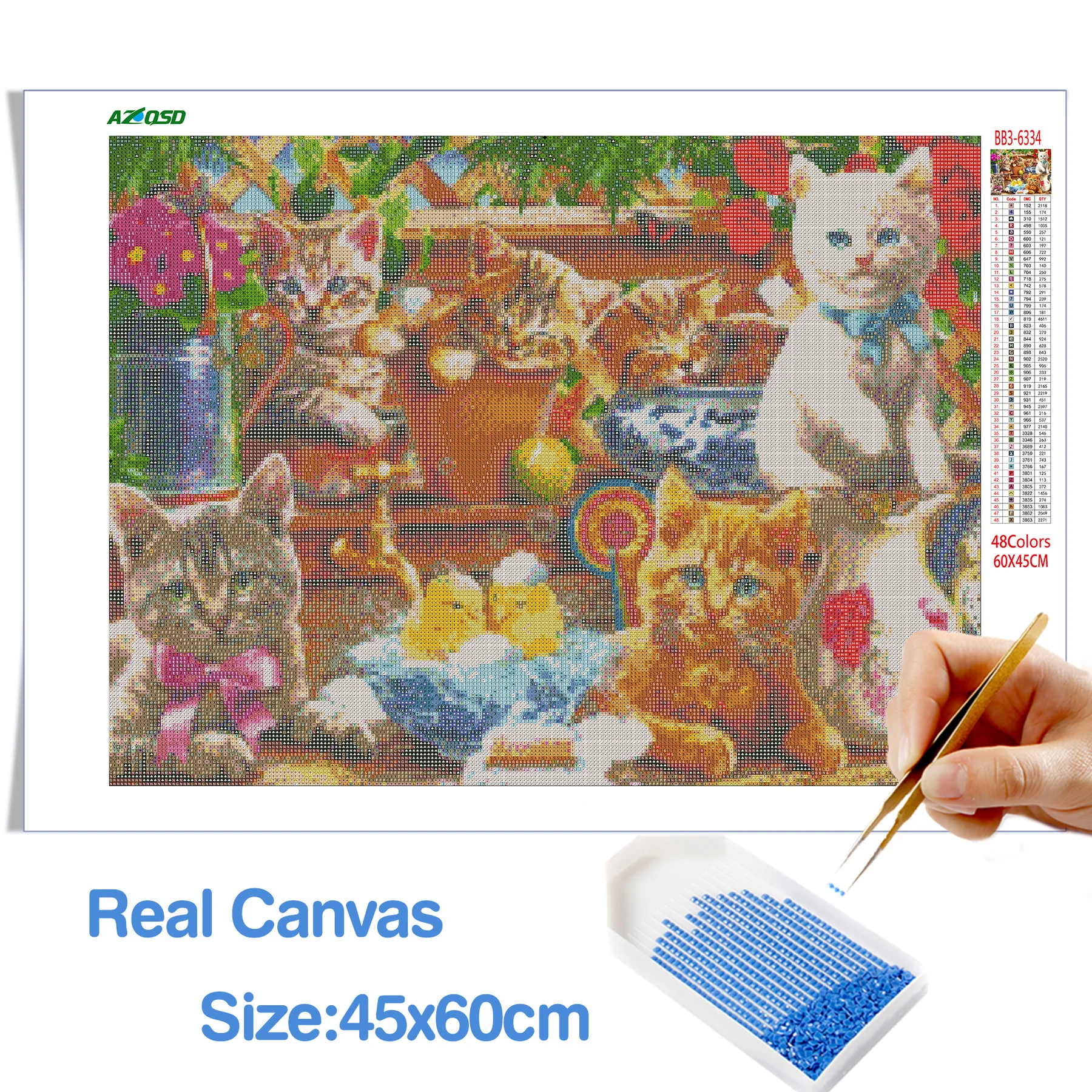 AZQSD Алмазная мозаика, Набор для вышивки крестиком кошки, полностью квадратная дрель, рукоделие, алмазная живопись, животные, стразы, домашний декор