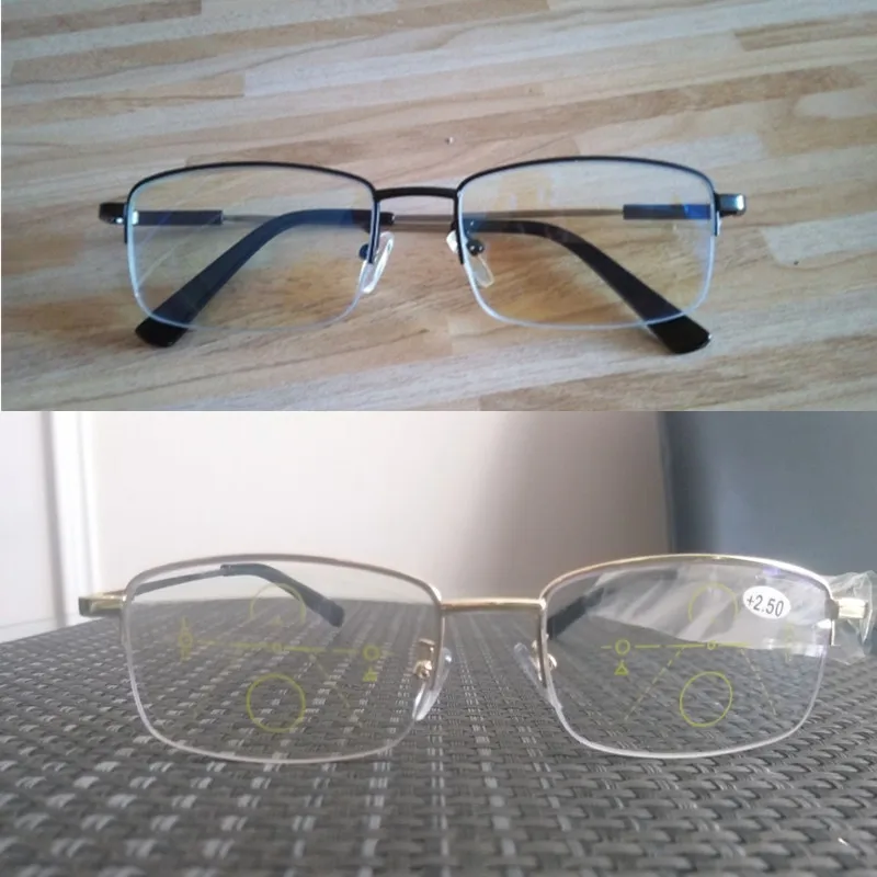 Мультифокальные пресбиопические очки для мужчин и женщин, с защитой от синего света, титановые очки в полуоправе из металлического сплава, прогрессивные очки для чтения