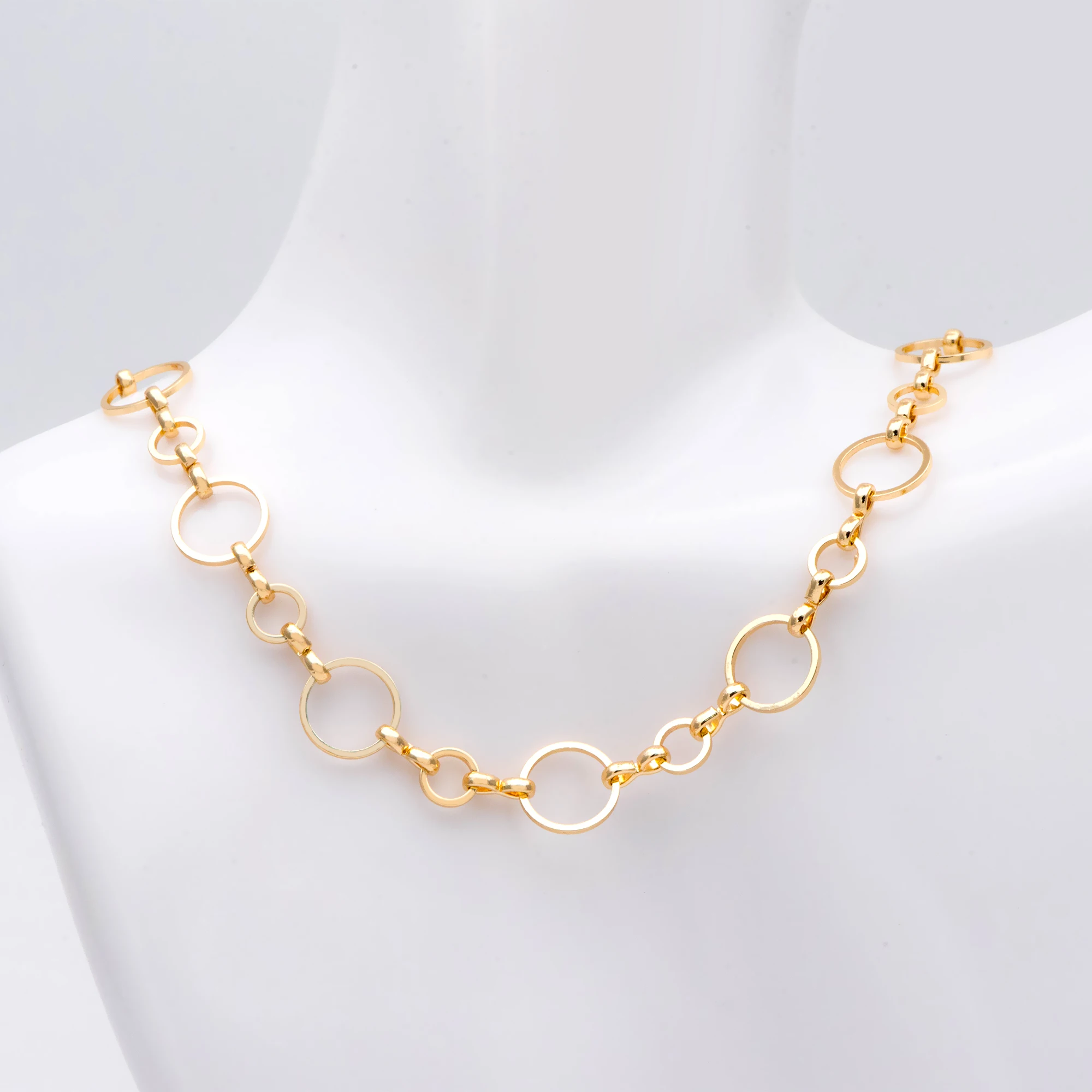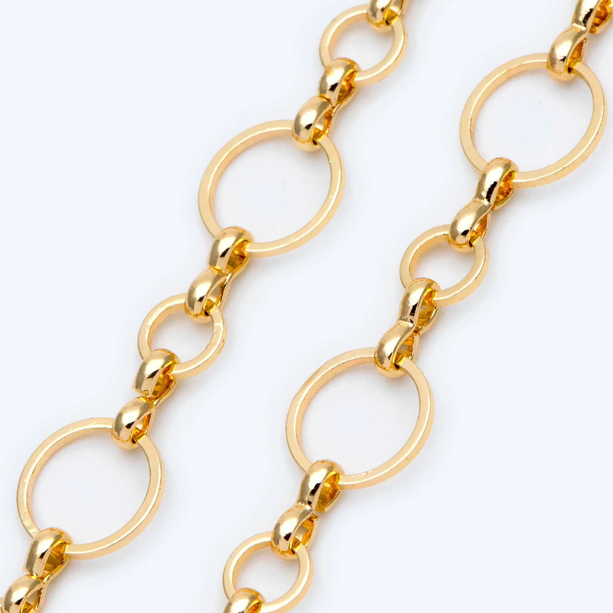 Золотые круглые петли цепи 10 мм, 18K, настоящая позолота, латунь, в виде Соединенных кругов цепи для изготовления ювелирных изделий (# LK-436) 1 метр = 3.3ft