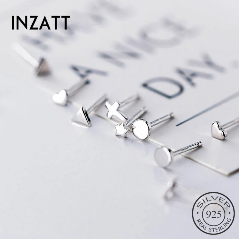 INZATT реальные 925 стерлингового серебра Звезда круглые серьги-гвоздики в виде капель с кристаллами в форме Мода для женщин, хорошее ювелирное изделие, минималистский геометрический аксессуары подарок