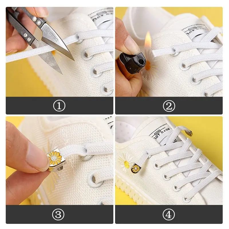 Шнурки без завязывания 1 пара, эластичные с маргариткой и металличе...