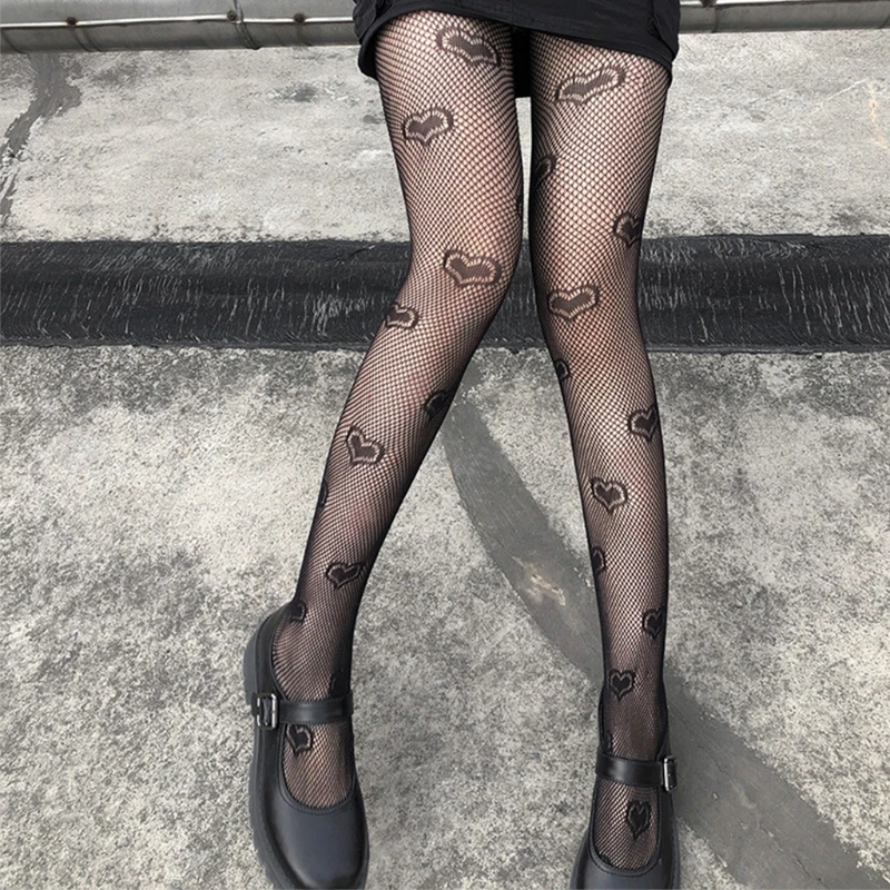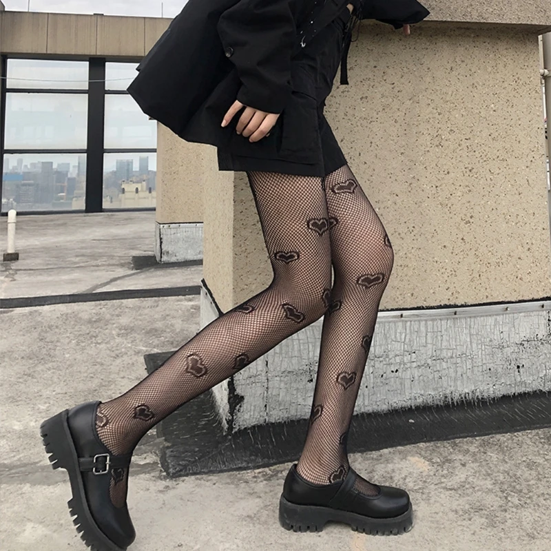 Колготки женские ажурные, черные, жаккардовые, прозрачные, в японском готическом стиле