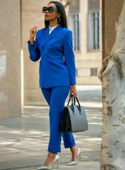 Костюм женский двубортный с длинным рукавом, жакет, брючный костюм, на заказ, королевский синий