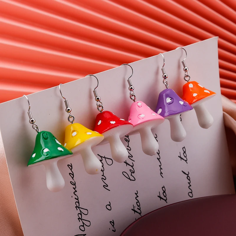 Красочного гриба длинные висячие серьги для женщин Акриловые милые ...