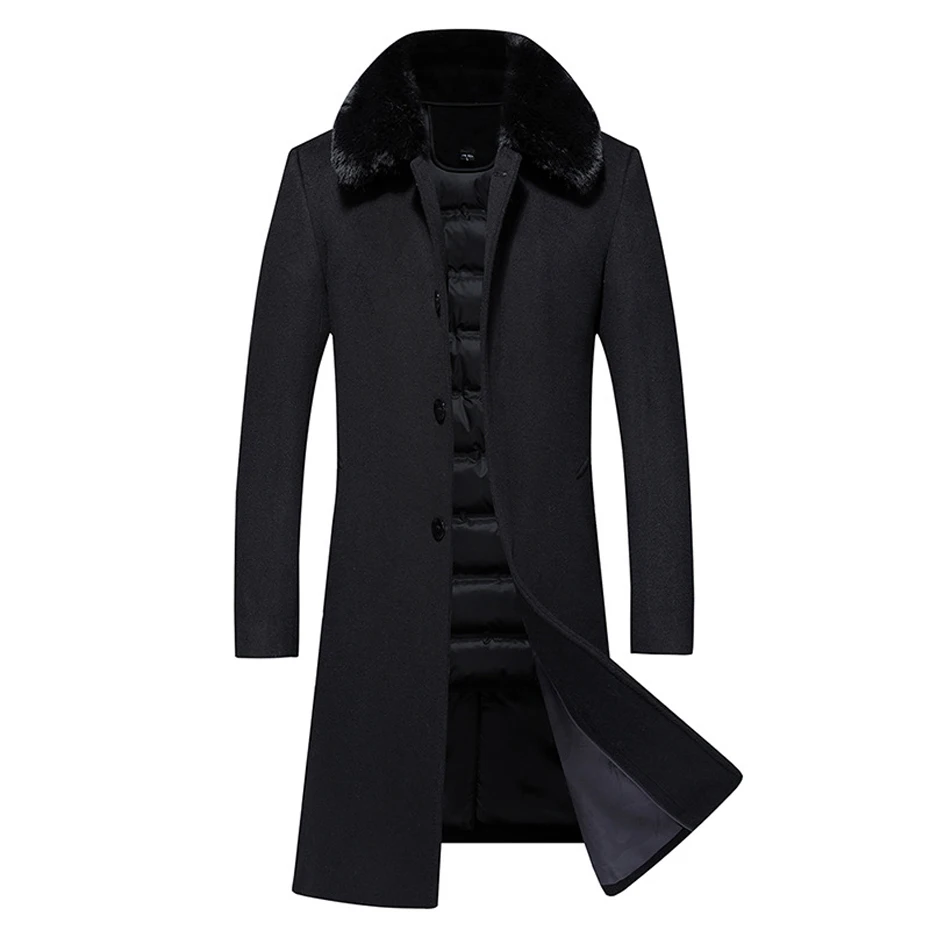 Для мужчин Шерстяное пальто большой меховой воротник защитит вашего малыша холодной зимой пальто подкладка 90% пуховое пальто M-5XL зимние Для мужчин ветровка верхняя одежда Для мужчин s куртки 19457