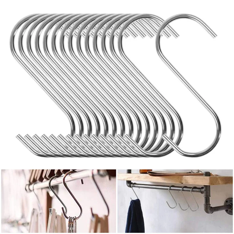 Многофункциональный s-образный крюк из нержавеющей стали, для домашнего хранения, гладкая поверхность, не повреждает руки, чистый и красивый, не липкий, прочный дизайн, хороший несущий, прочный, высококачественные материалы, не легко деформируется, не легко ржавеет, экономит место, маленький и светильник, для создания качественной жизни.