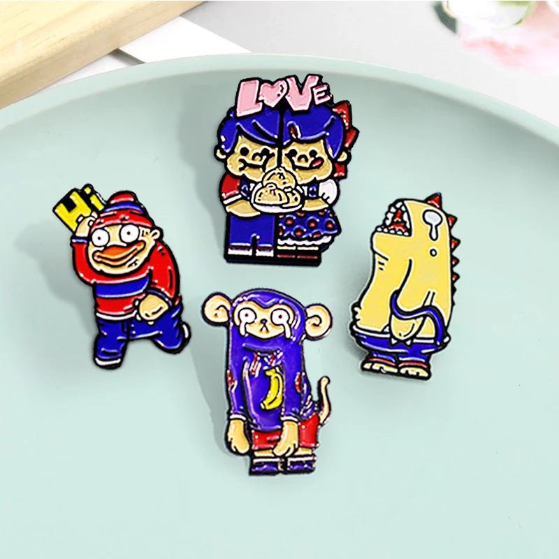 Забавные Животные фиолетовая брошь эмалевые булавки Привет любовь мальчики и девочки грустная обезьяна динозавр значок на лацкан ювелирные изделия для друзей
