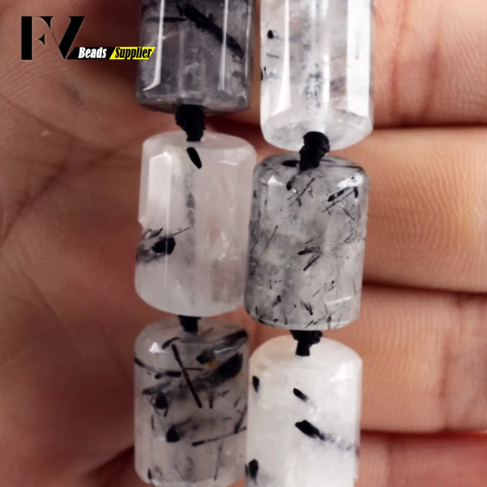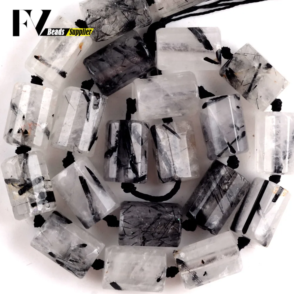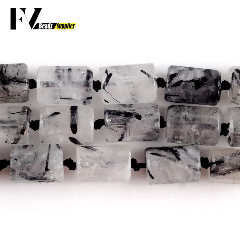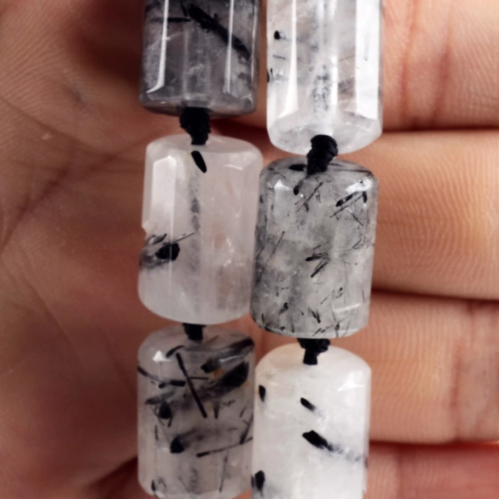 A + натуральный драгоценный камень, граненые черные рутилированные кварцевые бусины в форме трубки, свободные бусины-разделители для изготовления ювелирных изделий, браслетов и ожерелий своими руками