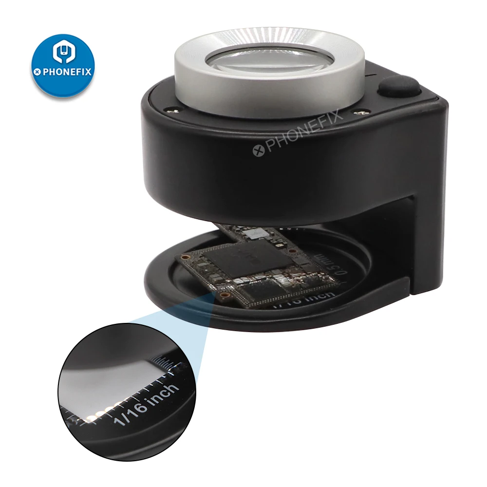 Твердый материал корпуса-изготовлен из твердого цинкового сплава с черной краской. Он довольно прочный и не легко повредить. Диаметр объектива этой 30X лупы составляет 1,02, и 3 белый светодиодный светильник 3 фиолетовый УФ-светильник. Эта маленькая Лупа будет хорошим помощником на работе.
