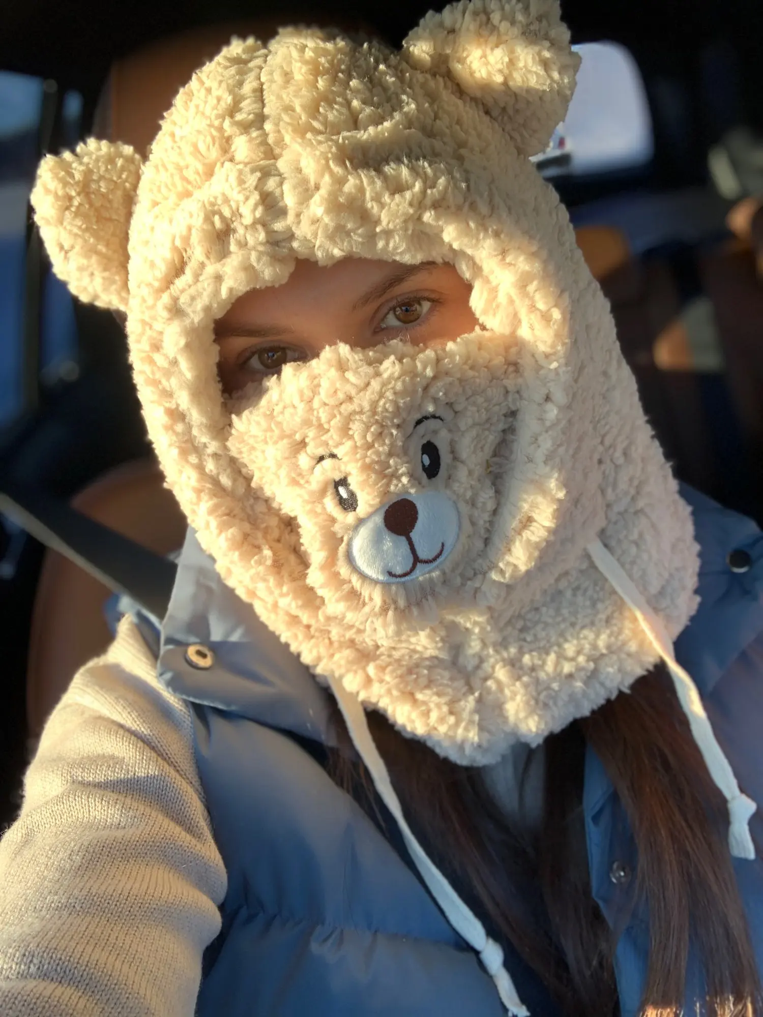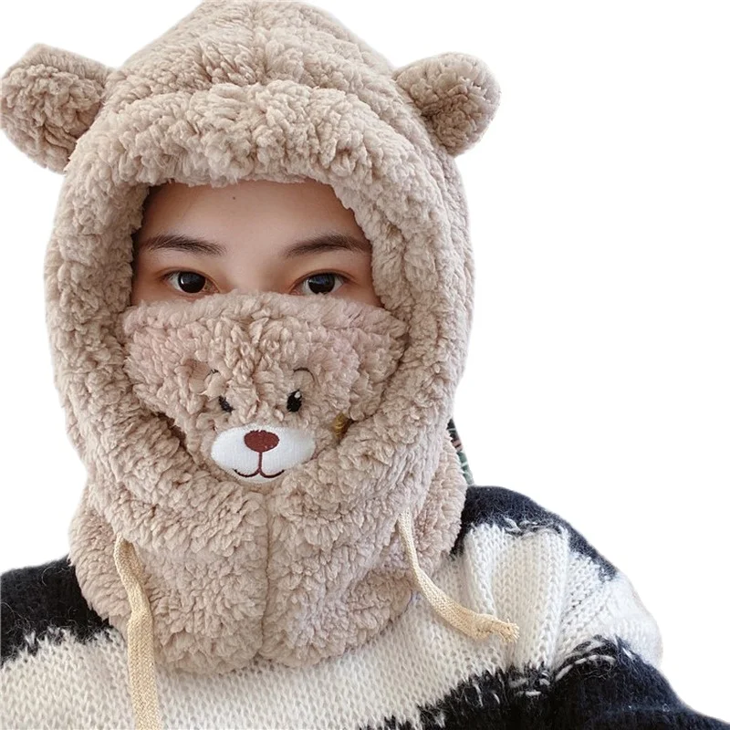 Зимние шапки, японский милый мультяшный медведь, маска, шапка, шерсть, теплые Утолщенные, защищают уши, женский подарок, хип-хоп кепка, для фотосъемки, вечерние