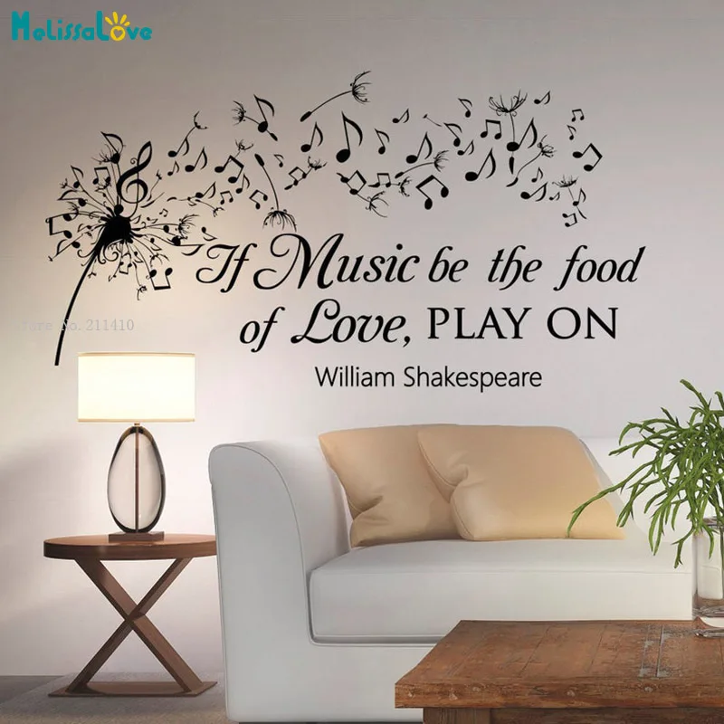 Одуванчик настенные наклейки Музыка цитаты If Music Be The Food Of Love Play Notes виниловые фотообои съемные YT5693