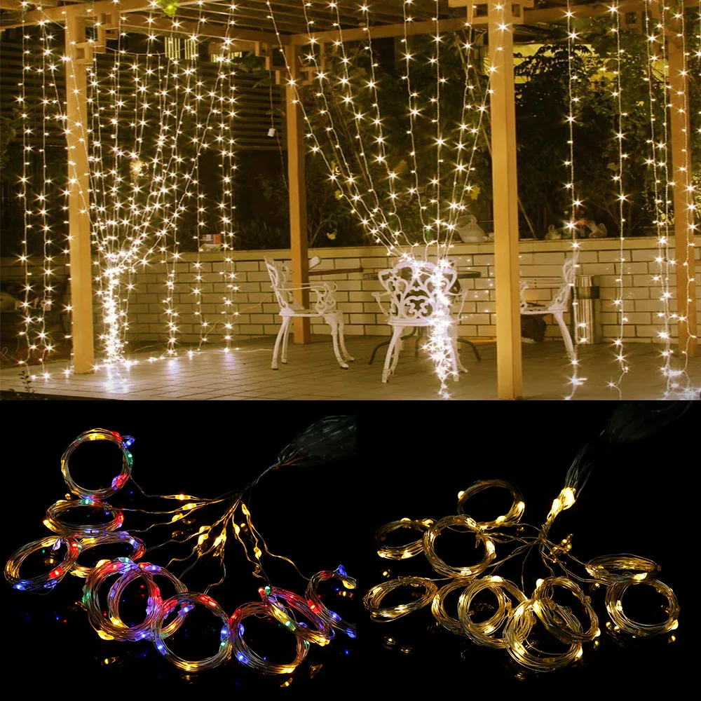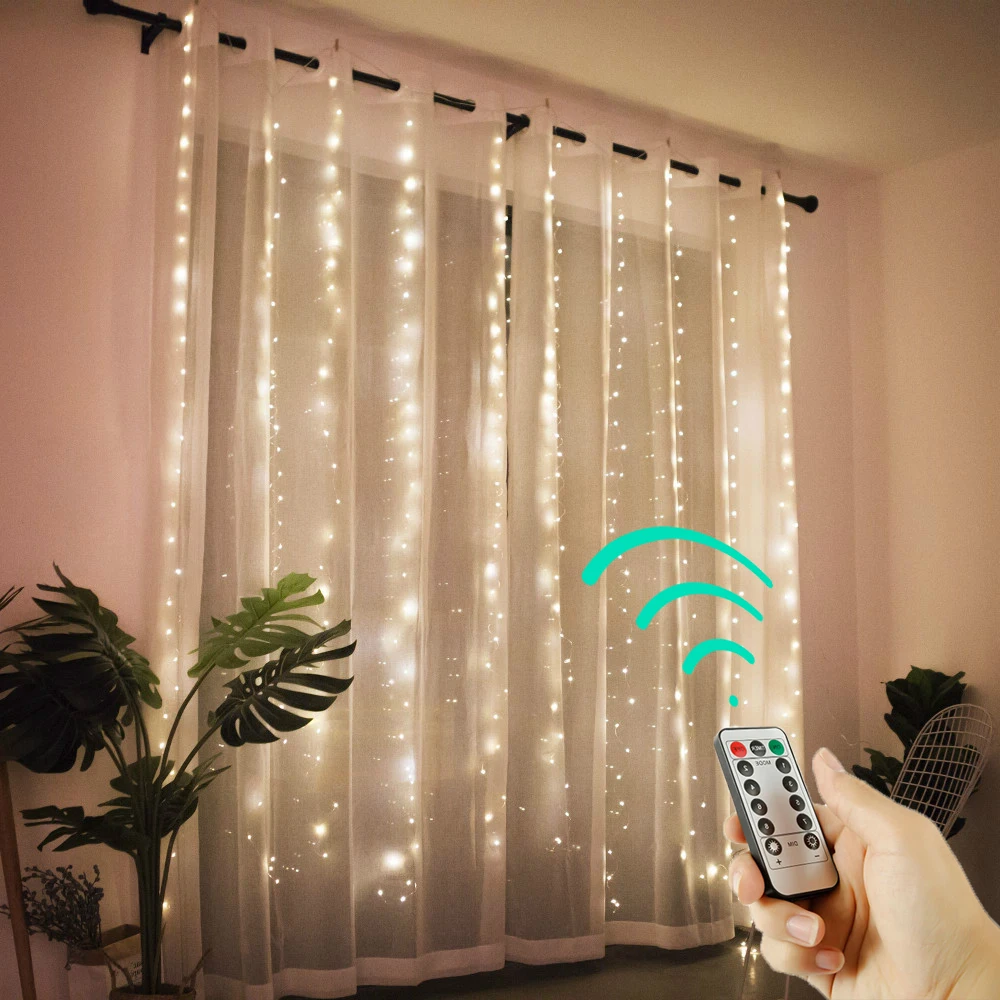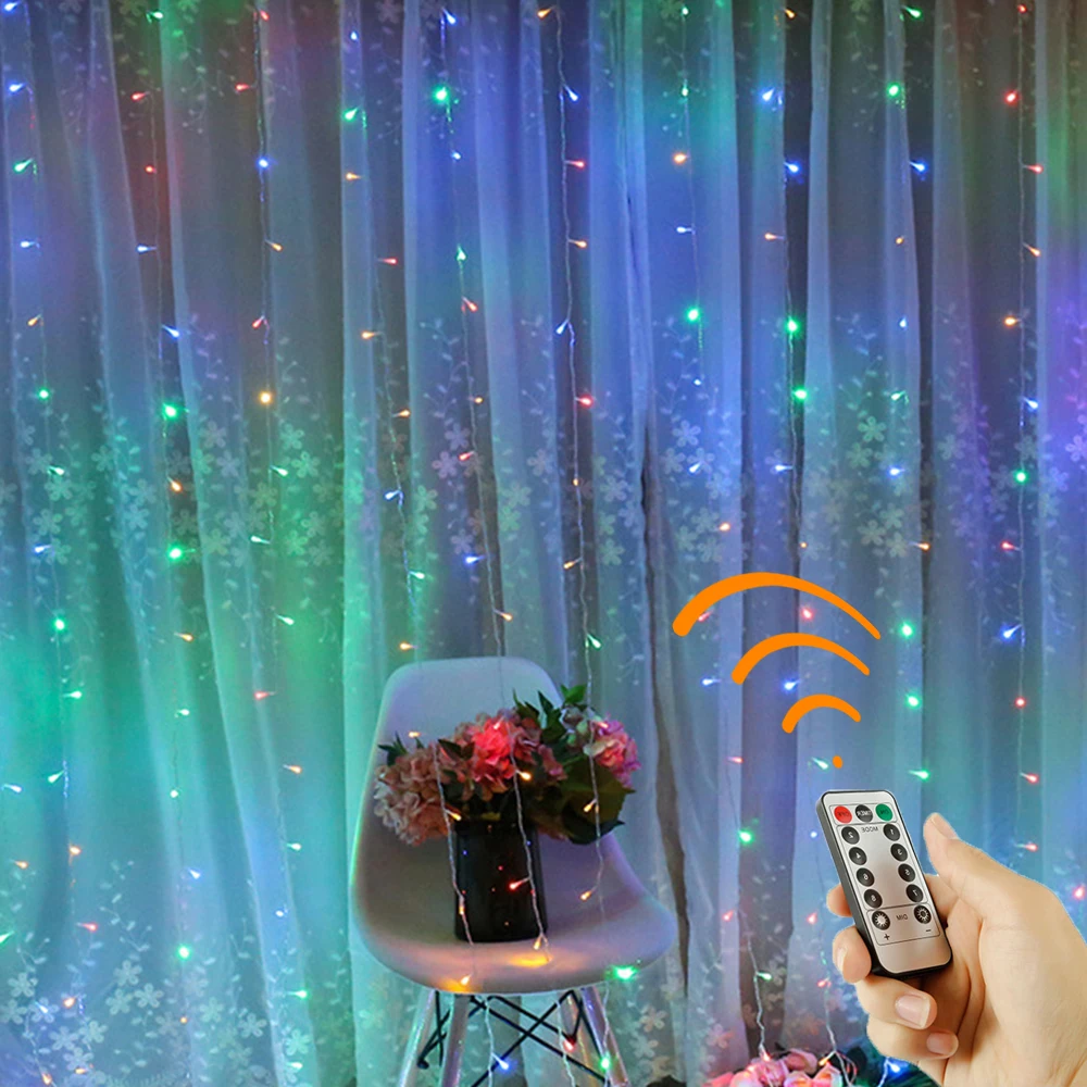 Светодиодная Рождественская сказочная гирлянда с дистанционным управлением, USB Новогодняя гирлянда-занавеска, праздничное украшение для дома, спальни, окна
