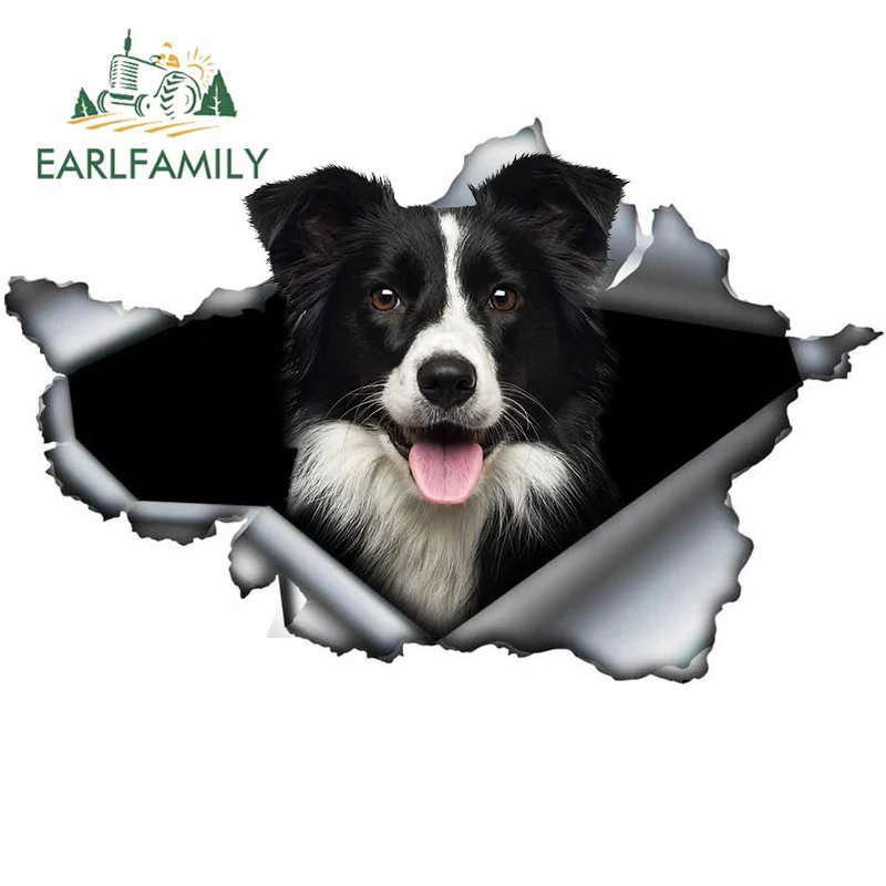 EARLFAMILY, 13 см x 10 см, граница колли, 3D рваная Автомобильная наклейка, оригинальный дизайн, виниловый Автомобильный багажник, украшение бампера, пользовательская наклейка