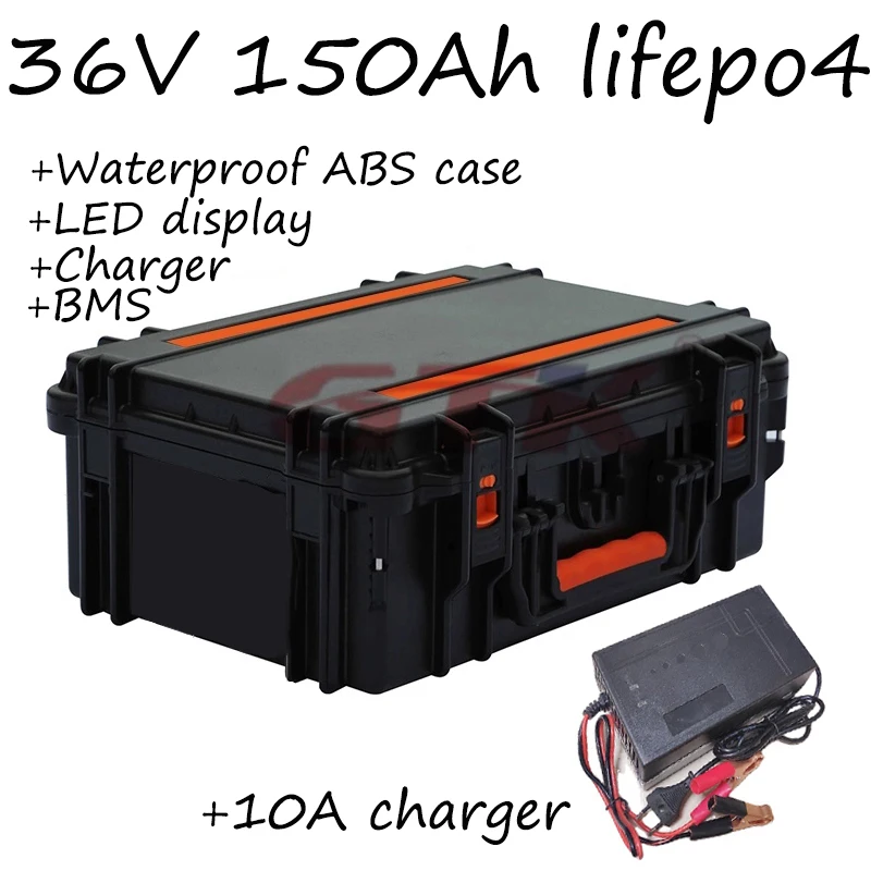 Водонепроницаемый е-байка 36В 150Ah LiFepo4 литиевая батарея BMS с светодиодный дисплей USB рыбацких лодок солнечной системы мотора EV RV + 10A зарядное устройство