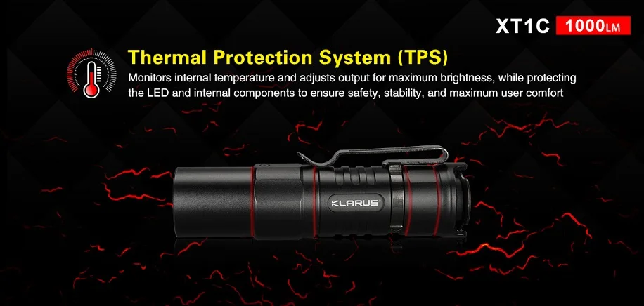 • Система тепловой защиты: обеспечивает оптимальную внутреннюю температуру фонарика, обеспечивает безопасность светодиодный-и ключевой компонент