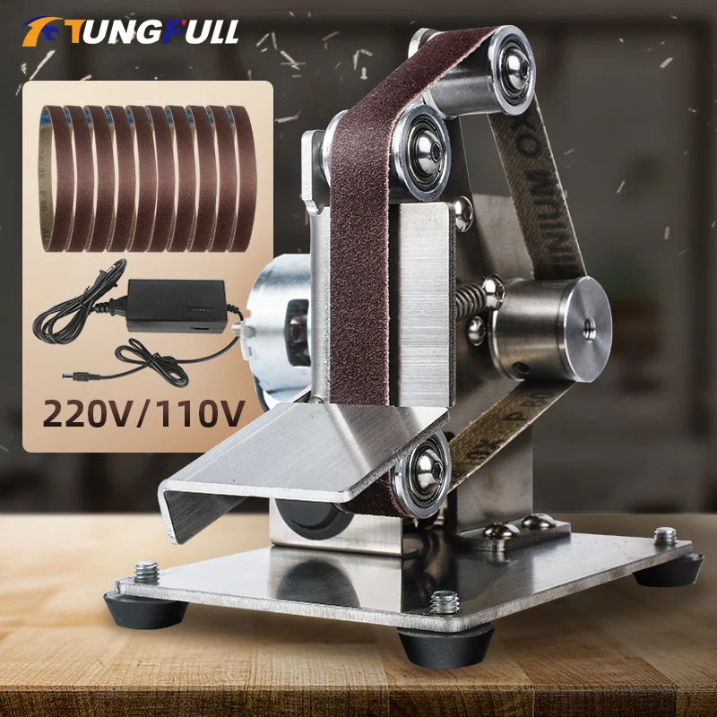 Миниатюрный ленточный шлифовальный станок TUNGFULL, шлифовальный станок, шлифовальный электрический шлифовальный станок, домашний полировальный станок сделай сам
