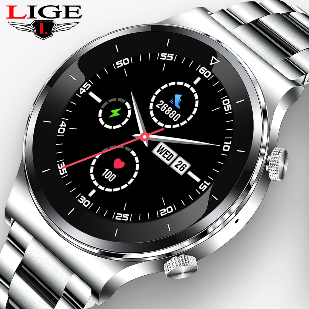 Смарт-часы LIGE мужские с Bluetooth и пульсометром, 1,3 дюйма