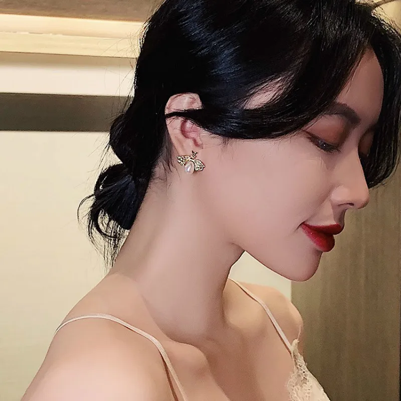 Новинка 2020, корейские изысканные серьги с жемчугом медовой пчелы, модные темпераментные универсальные маленькие серьги, элегантные женские ювелирные изделия
