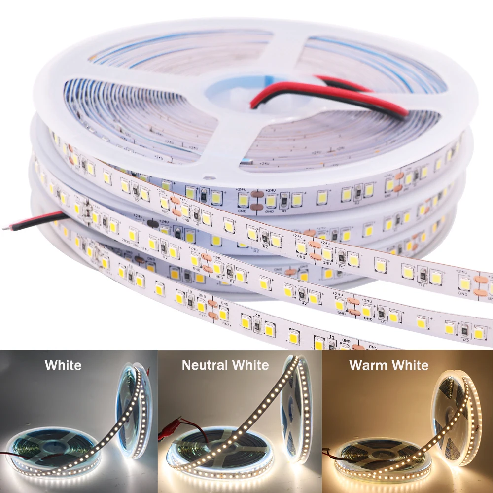 Светодиодная лента 24 В, 5 м, 10 м, 15 м, 20 м, 2835, гибкий ленточный светильник, 120 светодиодов, нейтральный белыйтеплый белыйхолодный белый для домашнего декора