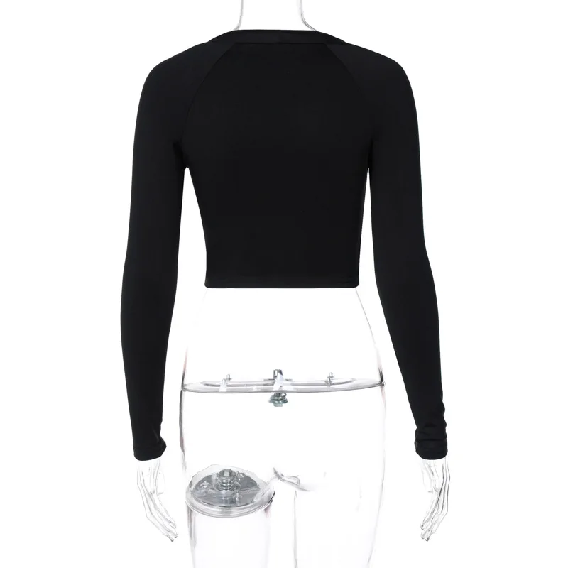 Женская блузка с длинным рукавом NewAsia, черная облегающая футболк...