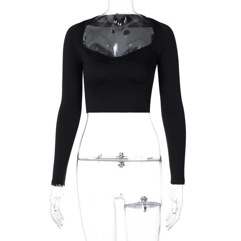 Женская однобортная футболка с косточками, сексуальная квадратная футболка с длинным рукавом, для вечеринок, корсет с воротником