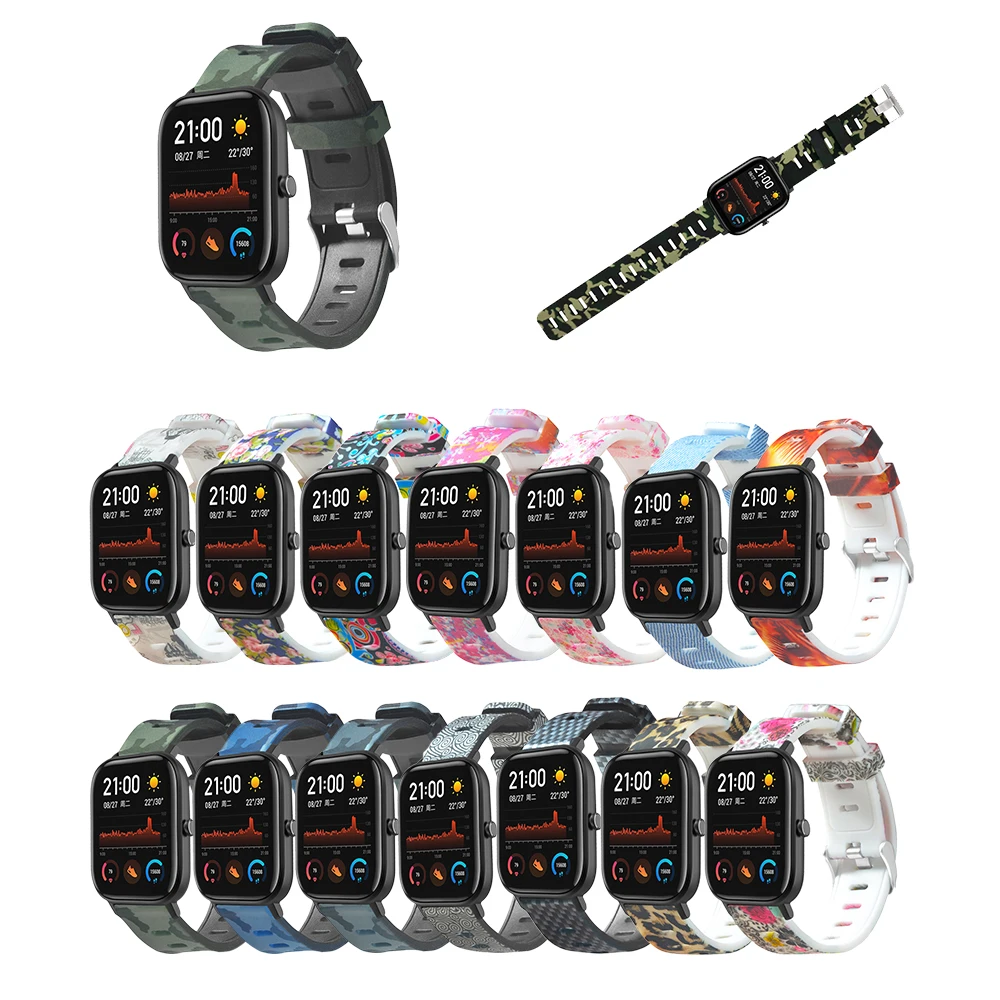 Ремешок силиконовый для часов Amazfit GTS 2, модный браслет с леопардовым принтом для amazfit gts, Galaxy Watch 3, 20 мм