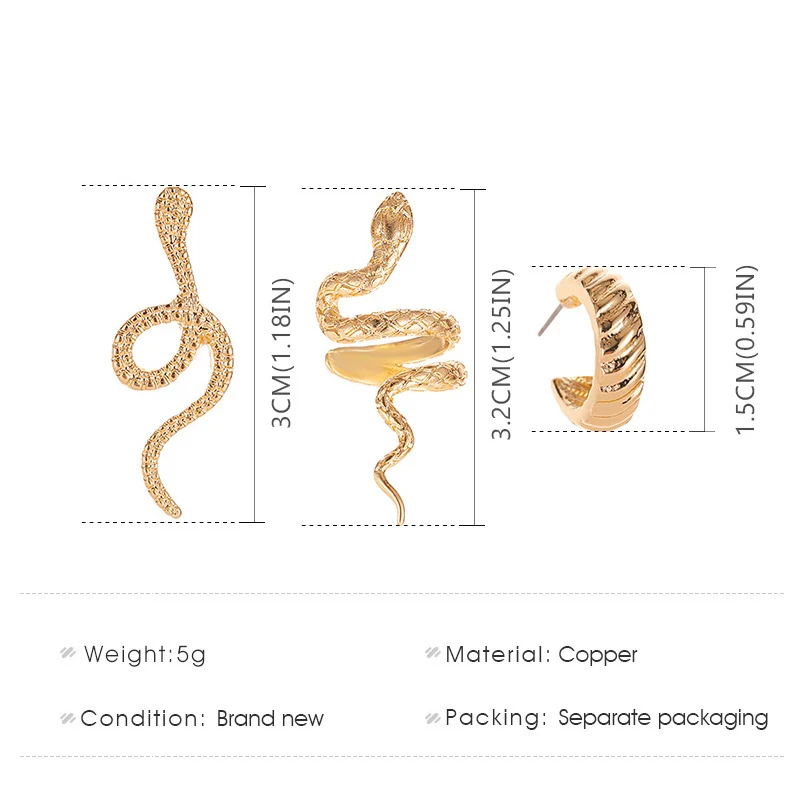 Серьги-Змеи в стиле ретро, крутой ветер, модный Комплект из трех пр...
