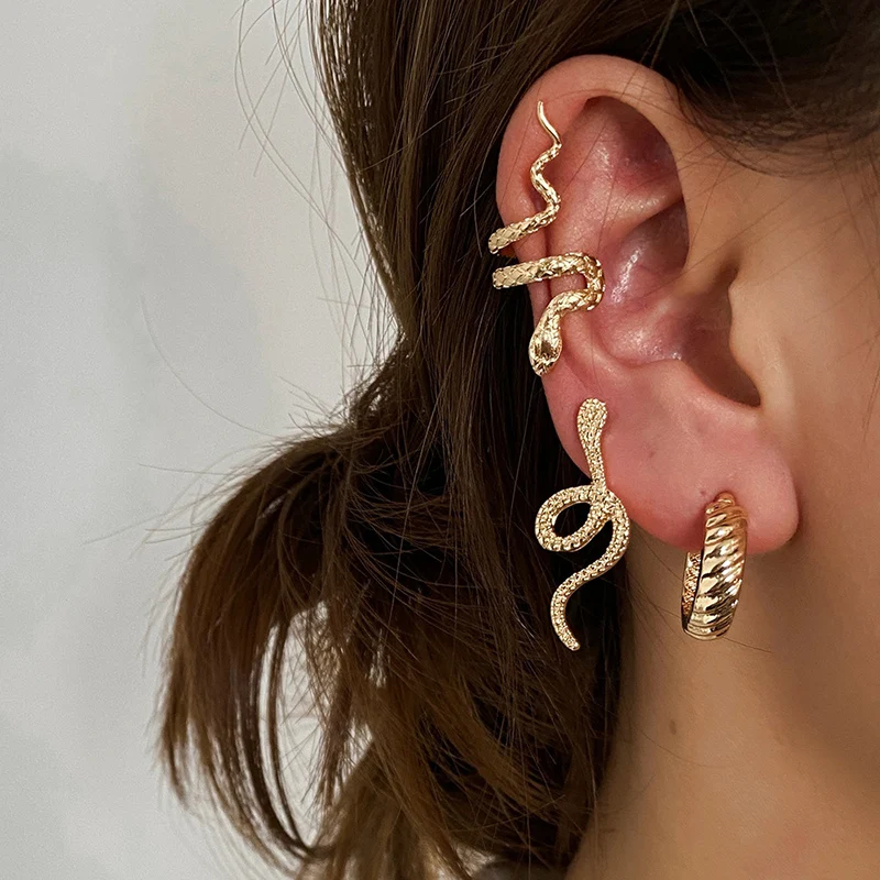3 шт.компл. серьги-клипсы в виде змеи для женщин винтажные золотые ...