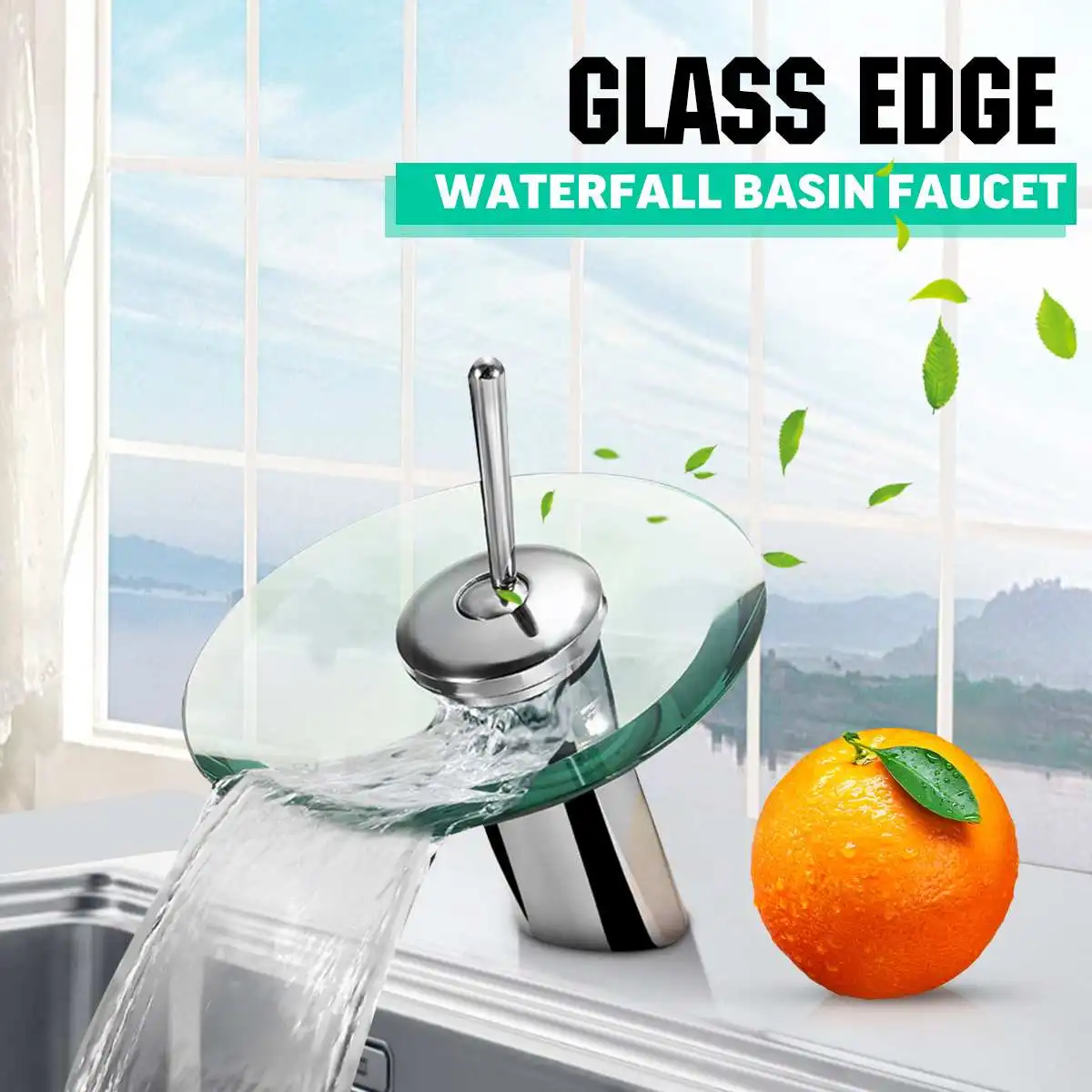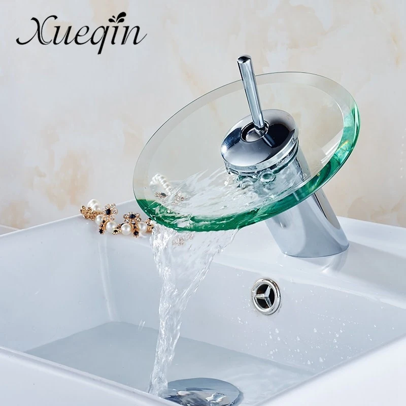 Хромированный полированный стеклянный кран со стеклянным краем, смеситель для раковины в ванной комнате, водопад, для холодной и горячей воды, крепление на раковину