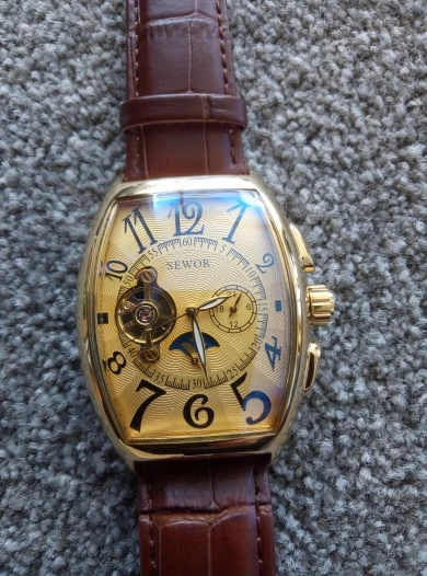Красивые часы, но не закончены должным образом. Было бы очень мило, если бы они наложили золотую пряжку на ремешок часов вместо серебристого, который не подходит к лицу часов. Очень глупа ошибка. Теперь мне нужно купить новый ремешок для часов. Был медленным при отправке. Если кто-то должен был купить золотое лицо и золотую заднюю поверхность, я хотел бы попросить их убедиться, что она имеет золотую пряжку. Добавили фотографии.